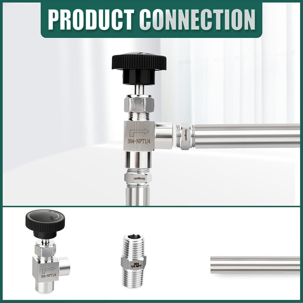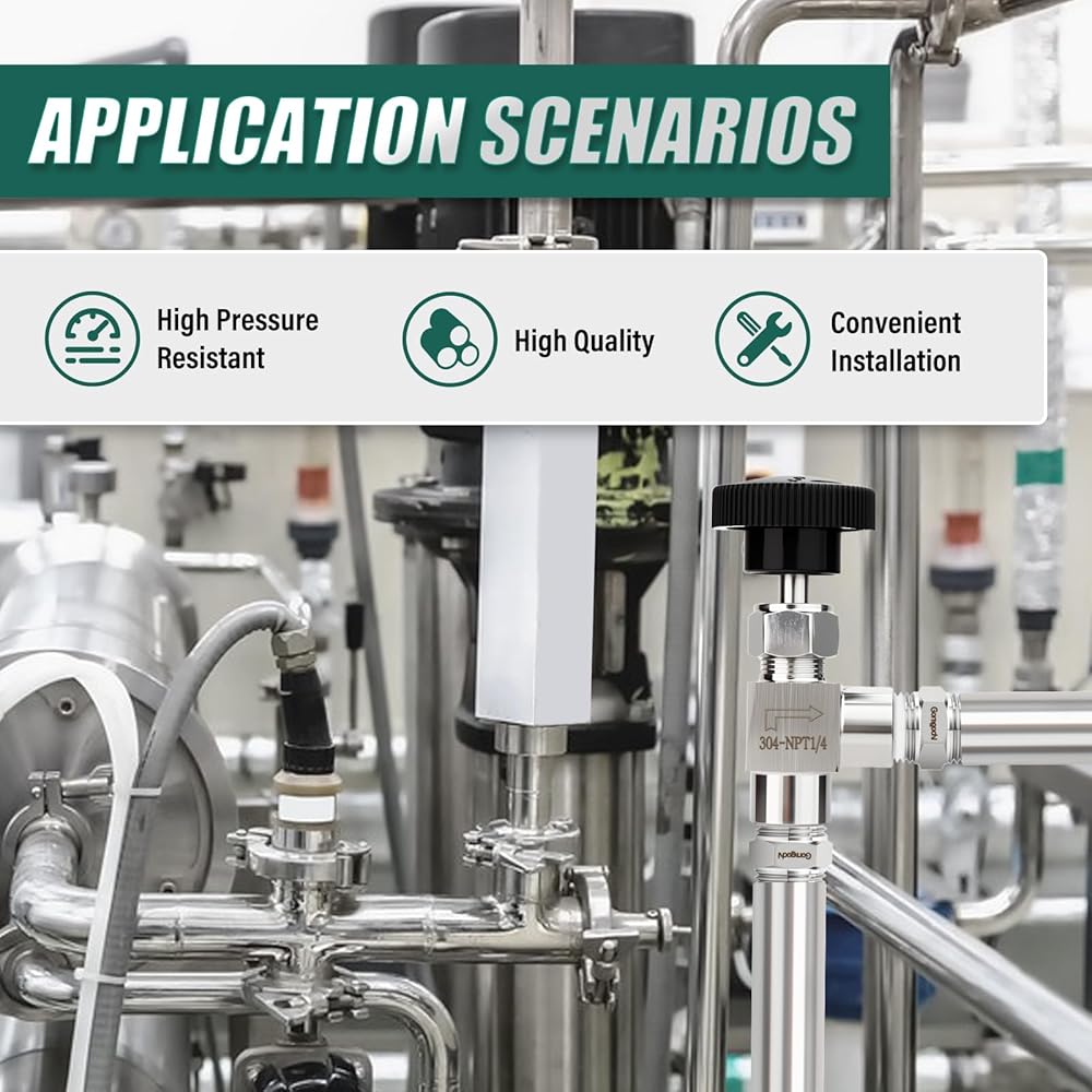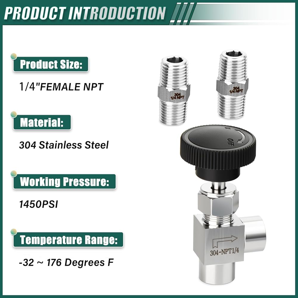 MATERIAL FEATURES: 304 Stainless Steel Needle Valve, with excellent corrosion resistance and high strength characteristics to ensure long-term stable operation in fuel, gas and liquid media.