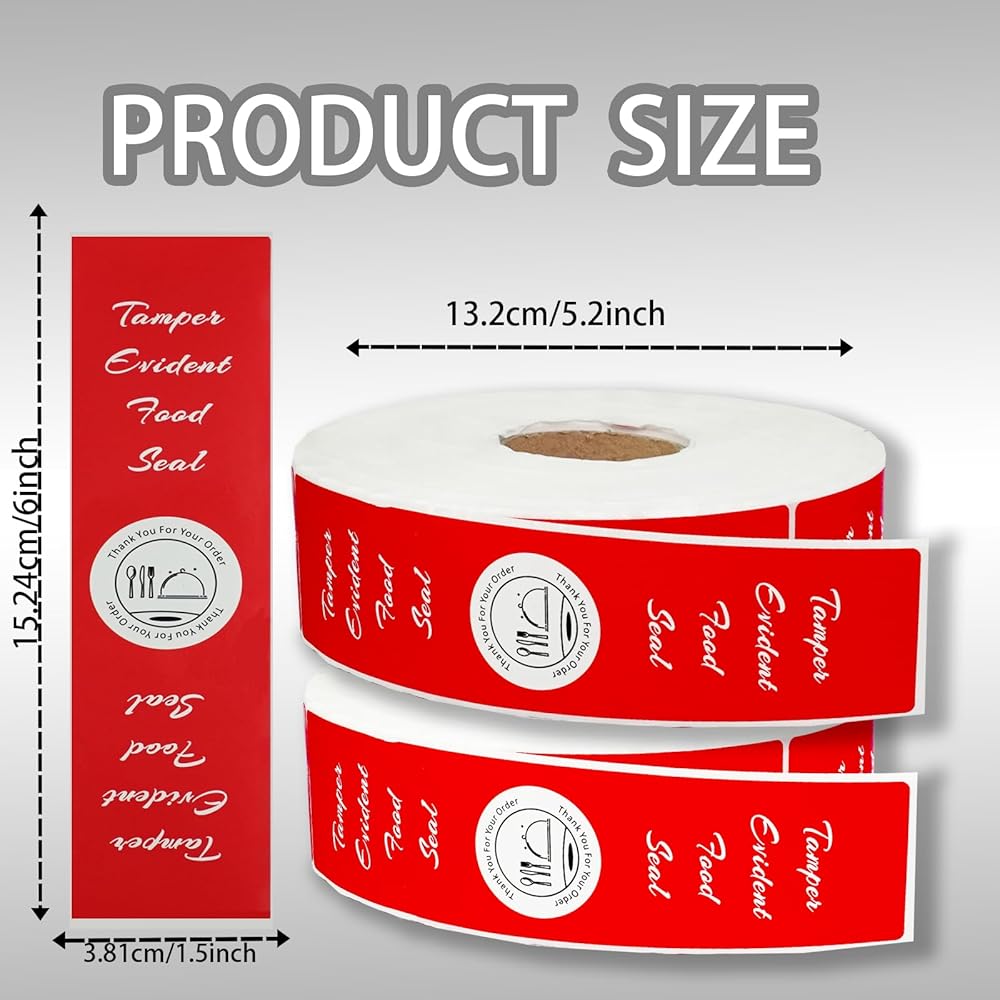 Enhanced Security Pack: You receive 2 rolls of tamper evident stickers, 600 stickers per roll, 1200 stickers in total; Each tamper evident sticker is printed with the message [tamper evident food seal] to offer additional visual marker promoting safety