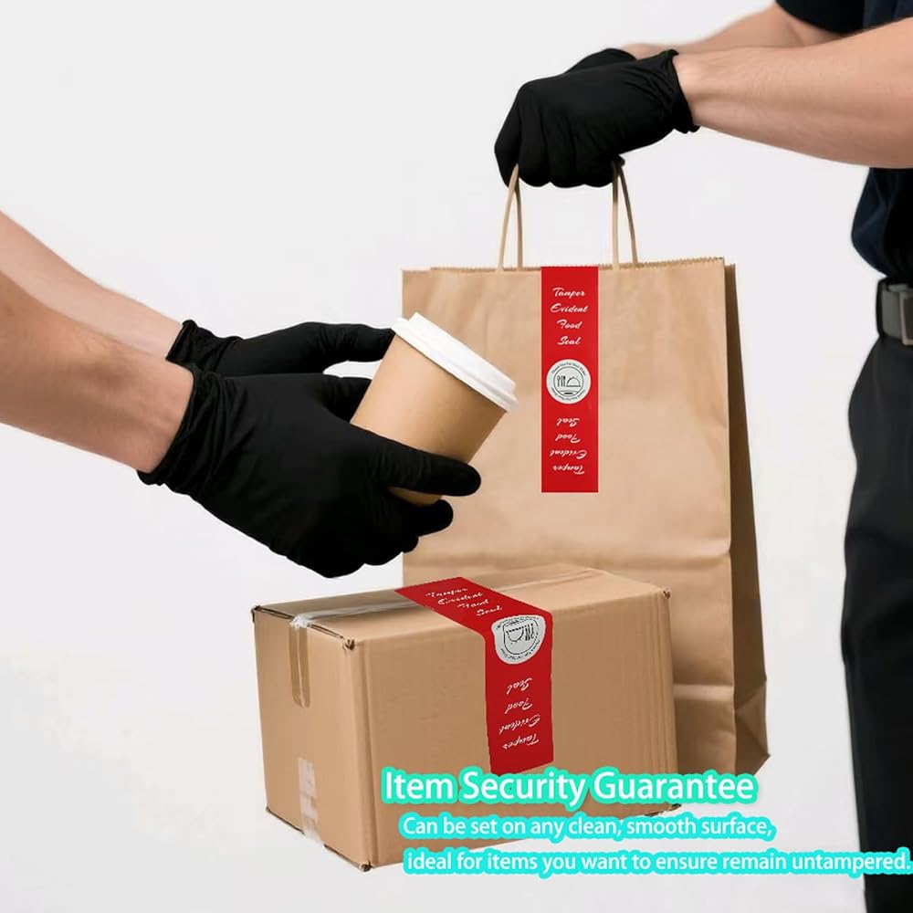 Secure Your Delicacies with Confidence: Our tamper evident stickers serve as seamless safety seals, designed to secure your food and provide a sense of trust and assurance; Whether for protecting your food during transport or providing fresh, untampered meals, simply stick these tamper evident stickers onto your meal packages and let your customers indulge without a worry