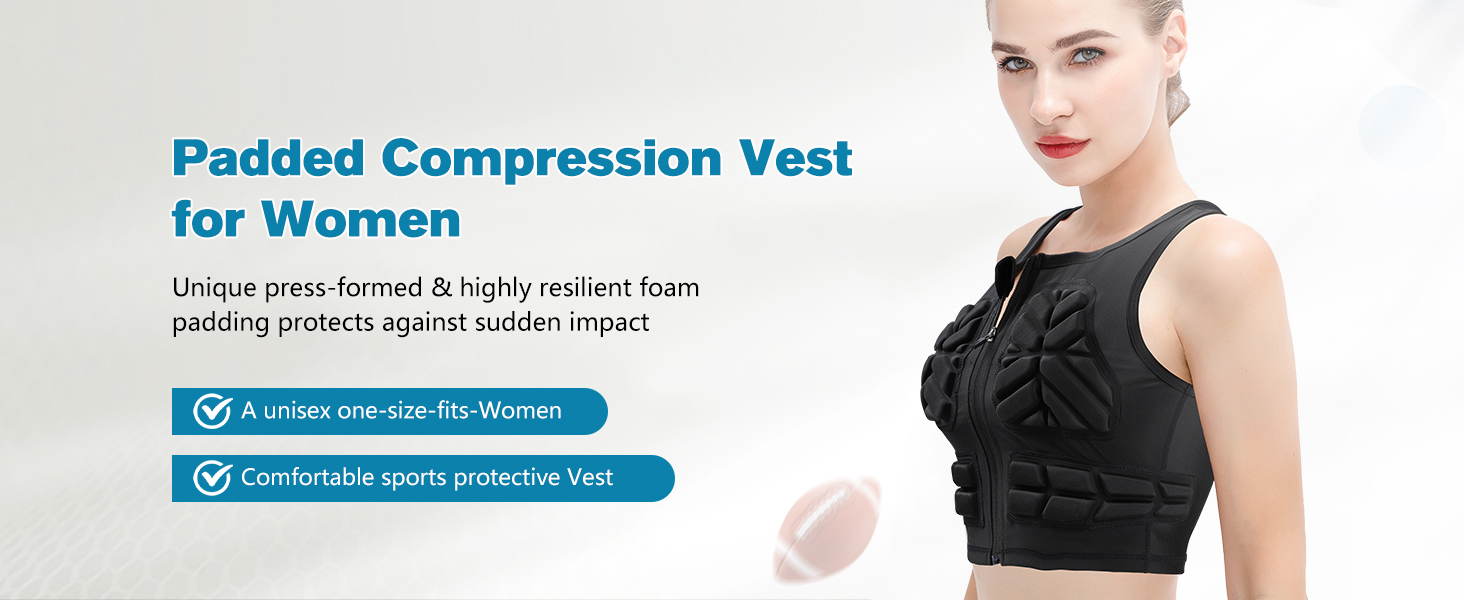 Provides extra support and padding to chest, breast and rib for women. This padded sports vest can effectively reduce the risk of potential injuries from impact and contact while maintaining on-field performance.
