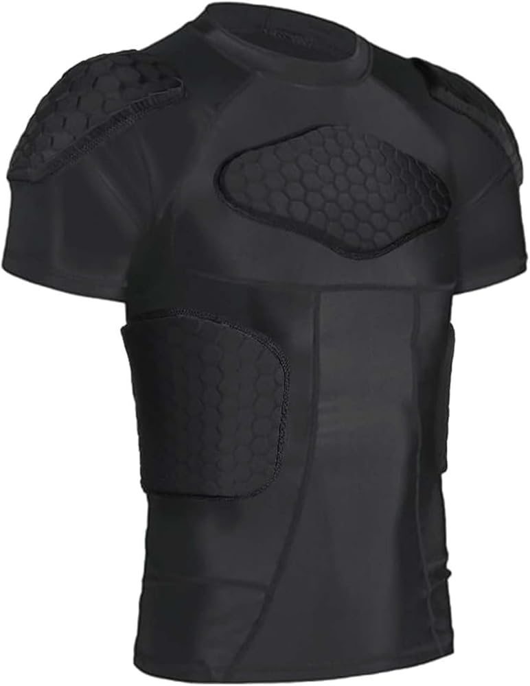 Fit Chest Size: Small=27-29 inch,Medium=30-33inch,Large=34-37 inch, X-Large=38-41 inch,XX-Large=42-46 inch,3X-Large=47-51 inch,Football padded shirt made from breathable and quick-drying fabric,keeps you cool and comfortable during sports.High - elasticity 4 - Way Stretch Fabric offers full mobility