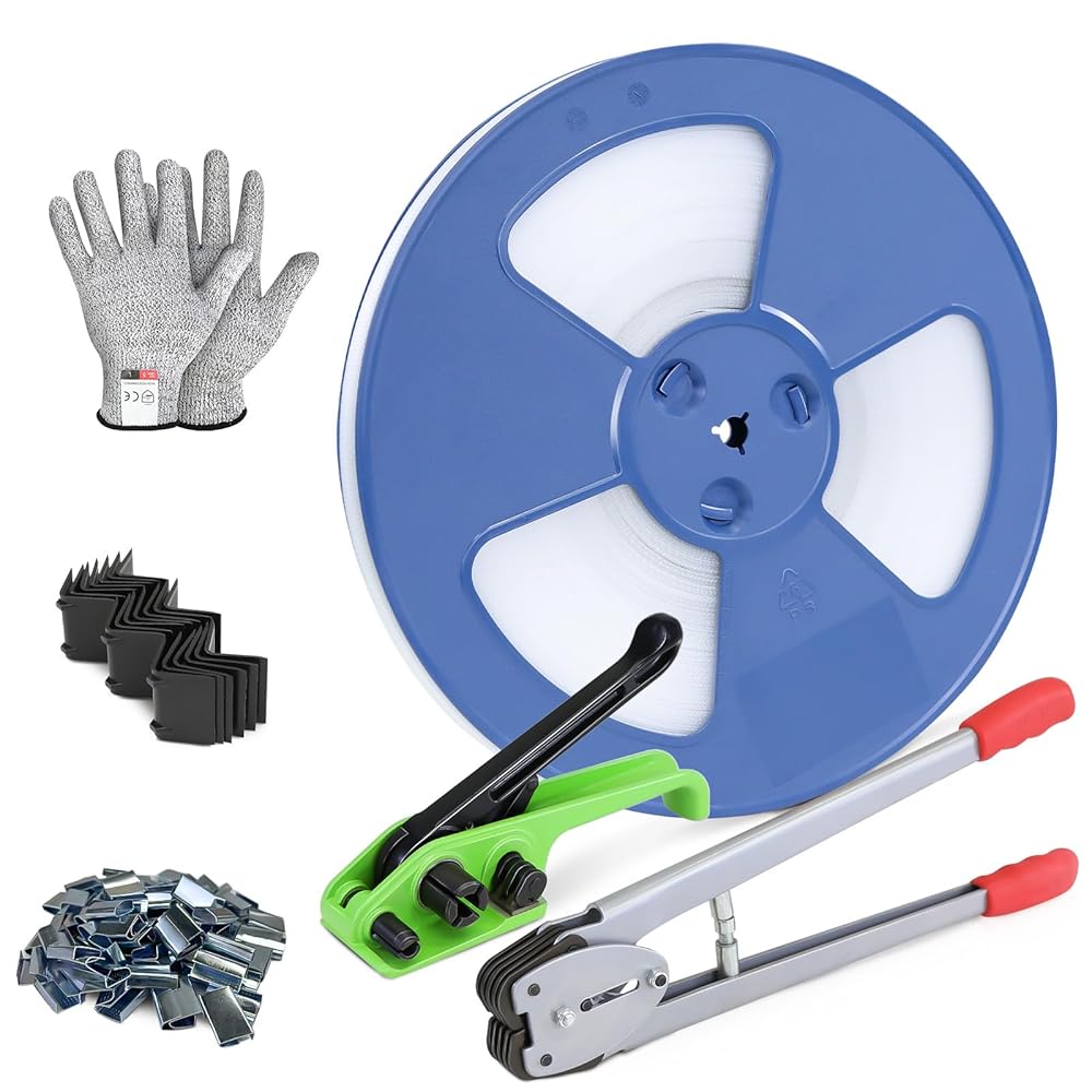 Crystal-Clear & Virgin PP Strapping: The kit features a 1/2in wide × 3200in polypropylene strapping band, crafted from new PP material. Our white transparent strapping not only offers a cleaner look but also ensures better flexibility and reliability, with no hidden defects from recycled materials.