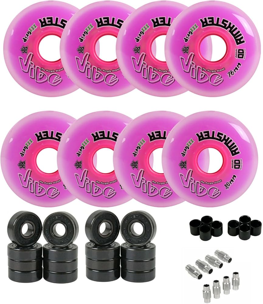 Includes: 8 Wheels, 16 Hybrid Ceramic Bearings, 8 8mm Floating Spacers, and 8 6mm Stepped Spacers (You only need 1 set of spacers depending on your skates, we inclue both as a courtesy). Please take the time to ensure the wheel specifications on your skates. Many manufacturers use different wheel configurations, but almost all use these 5 basic sizes: 59mm, 68mm, 72mm, 76mm, and 80mm. Measure your current wheels, or check your skate specs to ensure a smooth installation!