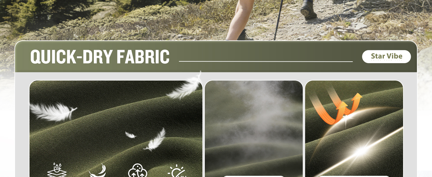 UV Protection: The fabric offers UPF 50+ rating, effectively blocking over 98% of harmful UV rays to protect your skin during extended outdoor adventures.