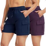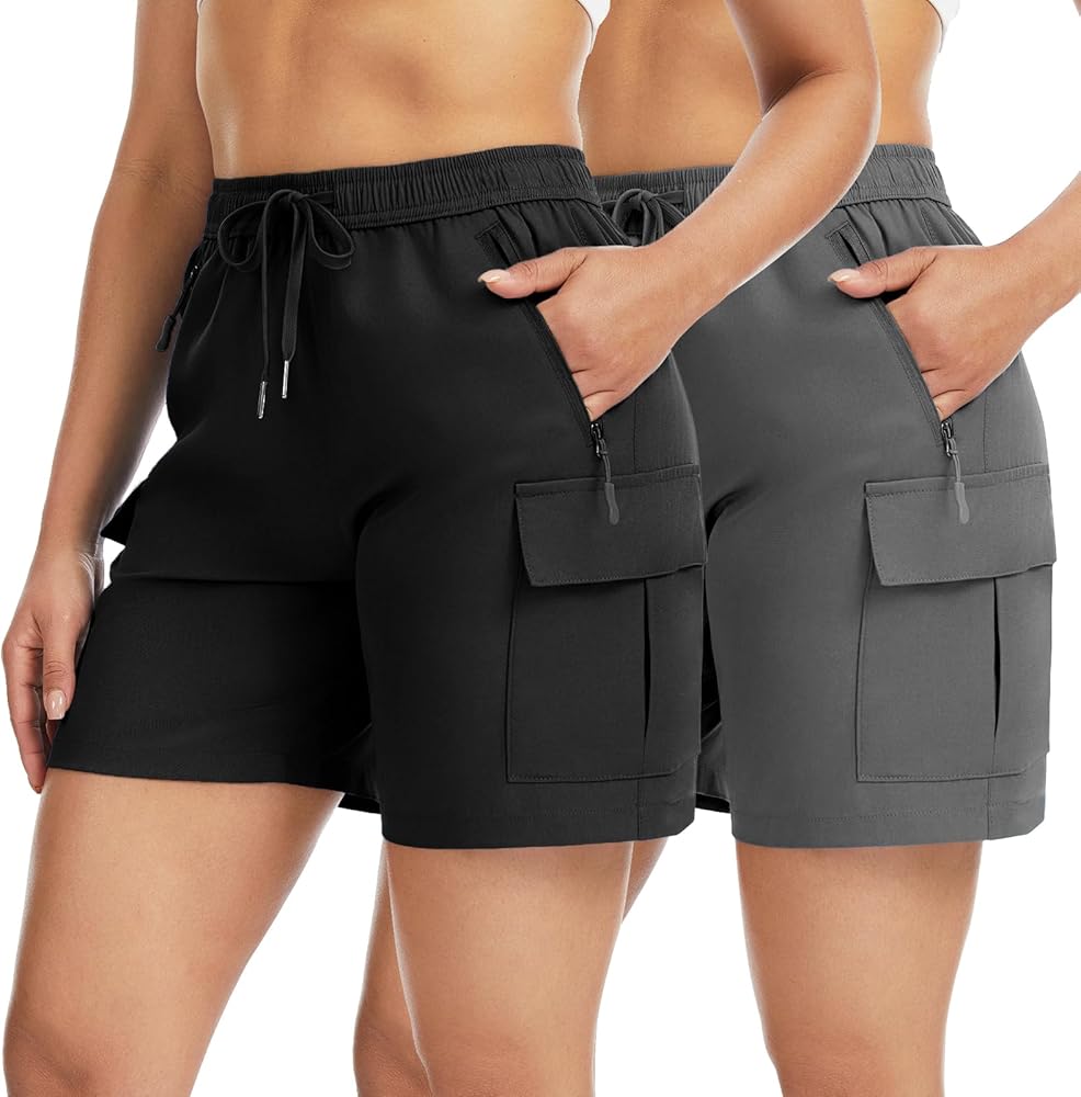 Quick-Dry & Breathable: Crafted from lightweight, breathable fabric, these women's hiking shorts rapidly wick away sweat, keeping you dry and cool during intense activities and all-day wear.
