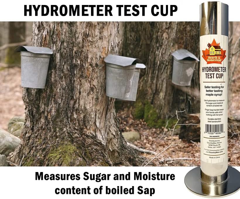 This hydrometer test cup is made of durable stainless steel. This is a great addition to other items in your tree tapping and syrup making kit.