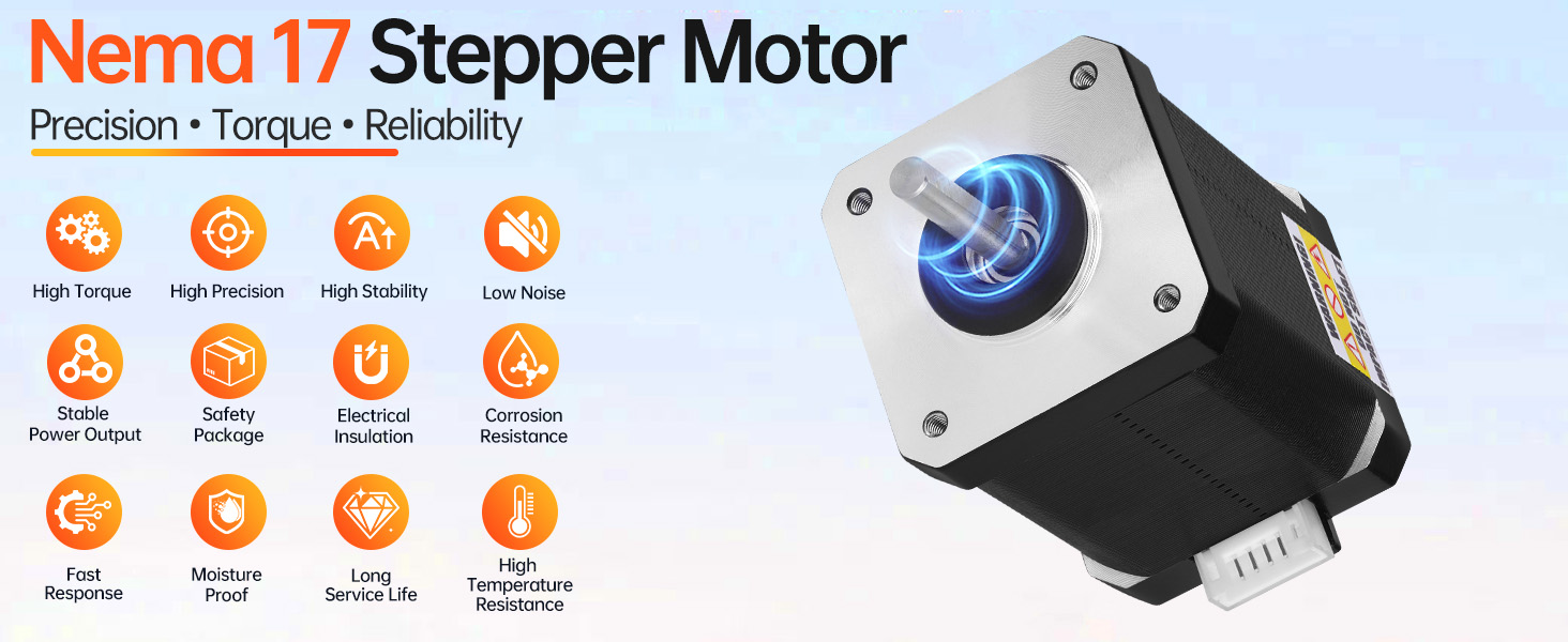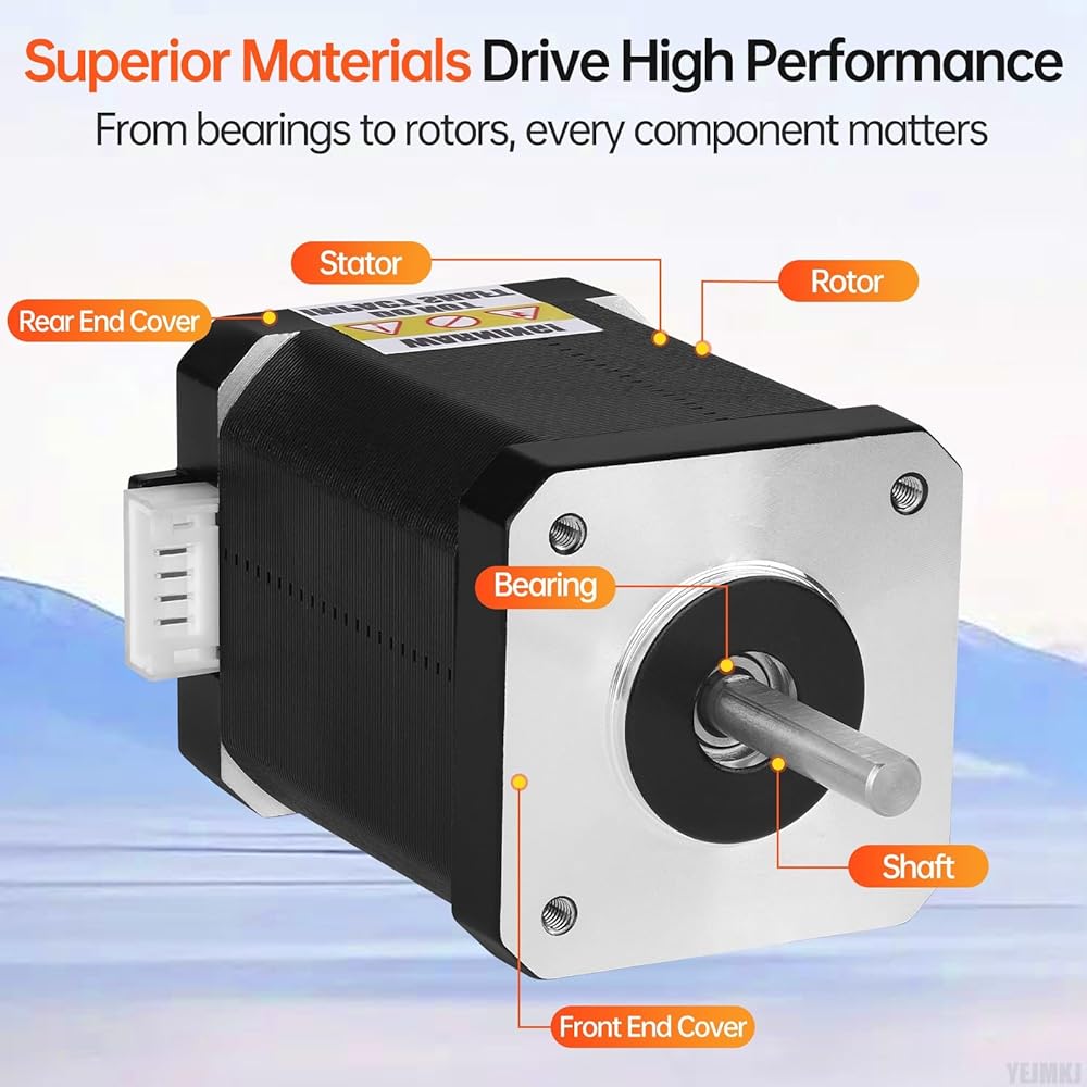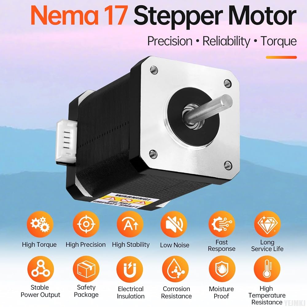 Exceptionally Quiet Powerhouse: Leveraging reinforced steel cores and meticulously wound coils, this Nema 17 Step Motor offers up to 20% increased holding torque versus standard units. Benefit from a quieter operational profile and minimal environmental disturbance.