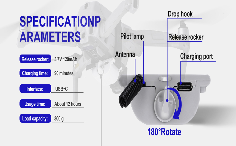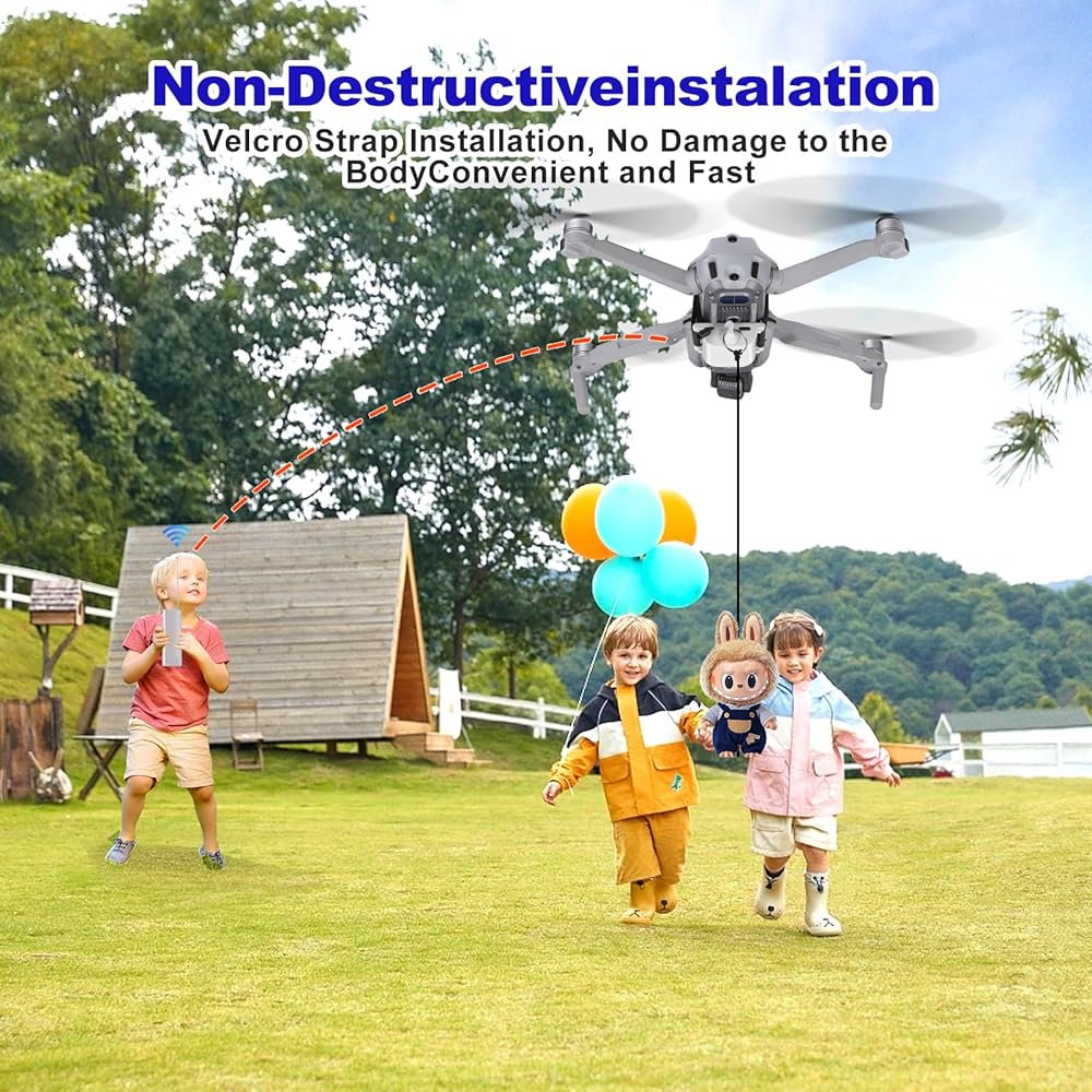 Universal Drone Airdrop System Broad Compatibility Works seamlessly with Mini4/Mini3 Pro/Mini2/Air2S/Air3/Mavic 3 Classic/Mavic 2 Pro & Spark series. Note: Not compatible with Phantom 3/4 or Inspire 1/2 models.