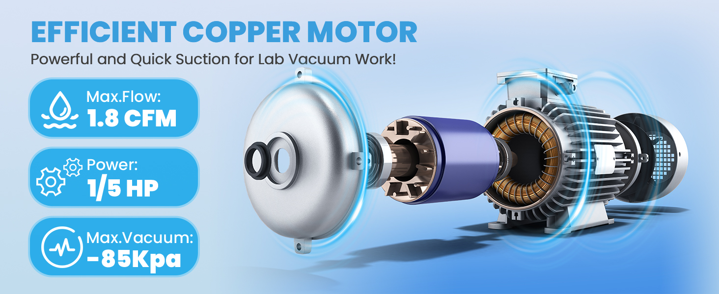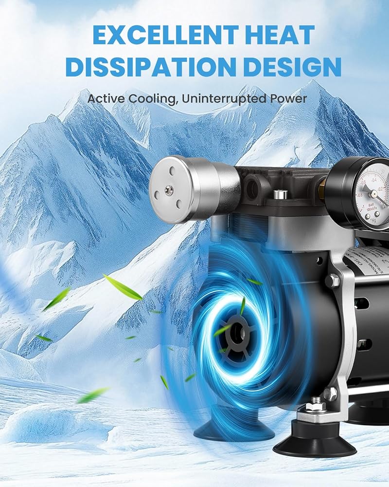 Oil-Free & Maintenance-Free Design: Our vacuum pump features an advanced oil-free structure, effectively replacing traditional oil-based pumps. It eliminates maintenance needs and ensures long-lasting performance. With 50L/min fast pumping speed and high vacuum level, it significantly improves work efficiency.