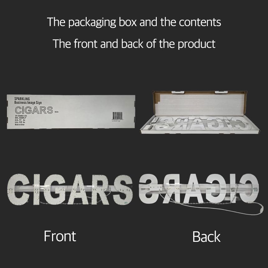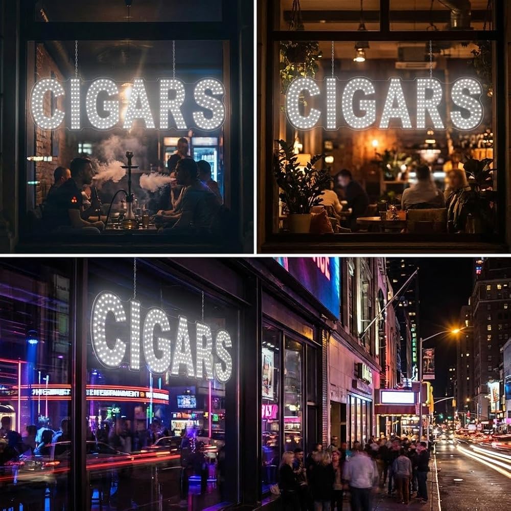 [Ultra-Bright White LED Clarity] Engineered with high-intensity white LEDs, this sign provides a crisp, clean, and professional glow. The elegant white light remains crystal clear even in direct sunlight or through heavy window tints, ensuring your "CIGARS" message is seen 24/7 with superior brightness.