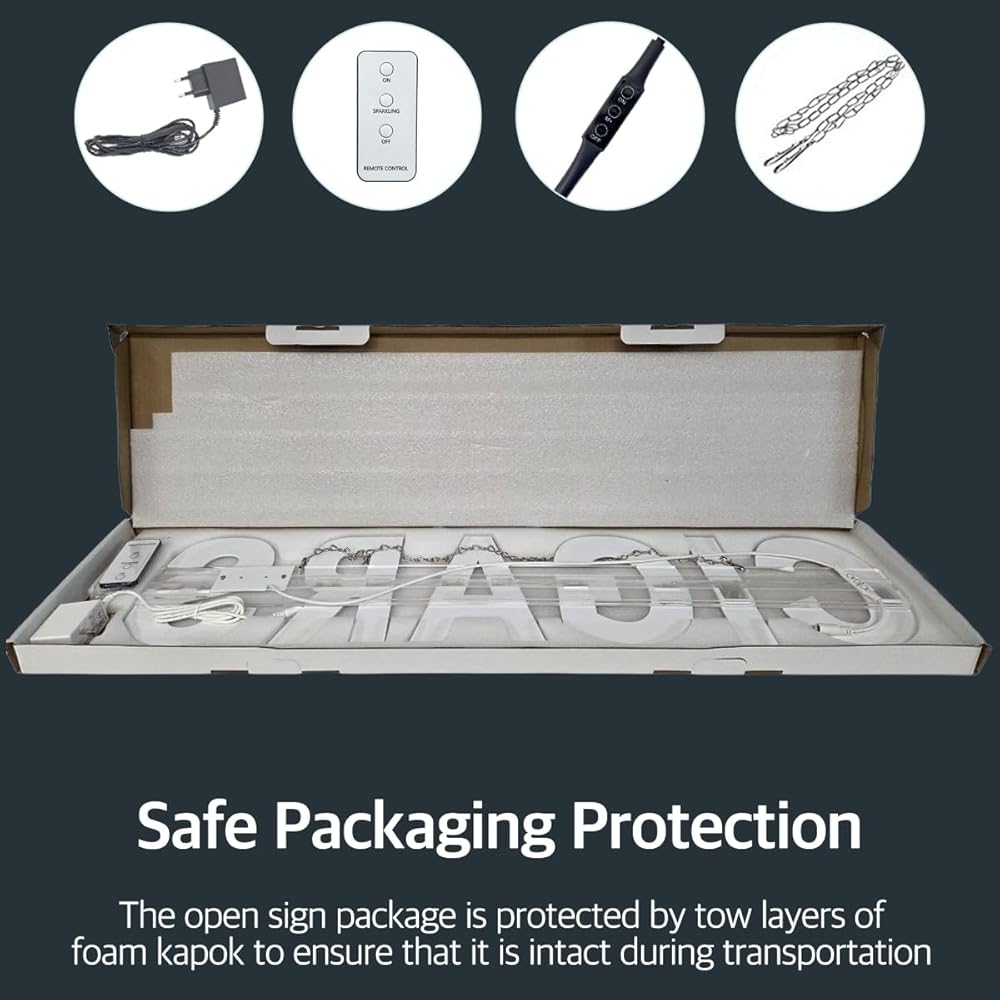 [Convenient Wireless Remote Control] Take full control of your storefront's atmosphere from a distance. The included wireless remote allows you to easily toggle the sparkling animation mode and power settings with ease, providing ultimate convenience for busy store owners without ever having to reach the sign manually.