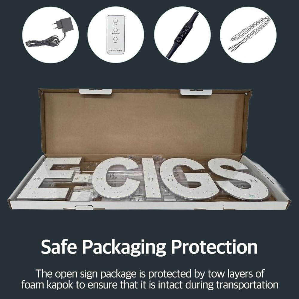 [High-Intensity Red LED Visibility] Engineered with premium red LEDs, this sign provides a vibrant and professional glow that remains crystal clear even in direct sunlight or through heavy window tints. Ensure your "ECIG" message is noticed 24/7 with superior brightness that outperforms traditional neon.
