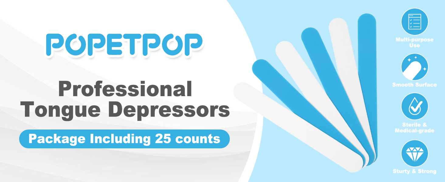 POPETPOP 25 Pack Tongue Depressors, Sturdy Plastic Tongue Scrapers for Oral Cavity Diagnostic, Reusable Flavored Depressors with Smooth Edge for Medical Laboratory Use (White)