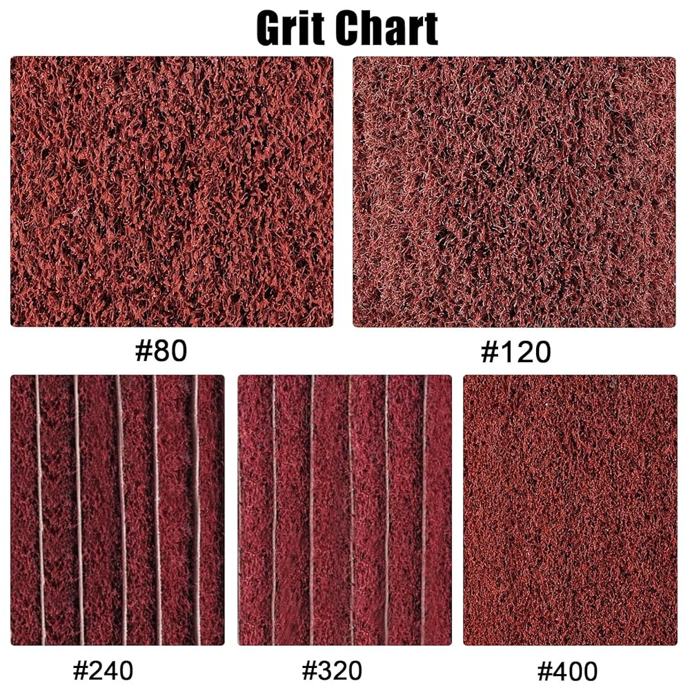 5 Grit Set: SANJIAN non-woven flap wheels are 5 pack,1pcs each of 80/120/240/320/400 grit. Diameter: 120mm (4.7"); Width: 100mm (4"); Center Hole Thread Size: 19mm (0.74"). Fit burnishing polishing machine ONLY