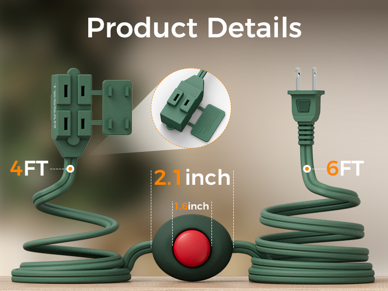 10 FT Extension Cord: This dimmer switch for lamp with a 10FT cord, includes 6 FT from the plug to the foot switch and 4 FT from the switch to the outlets; This foot switch for lamp can long distance control electrical appliances