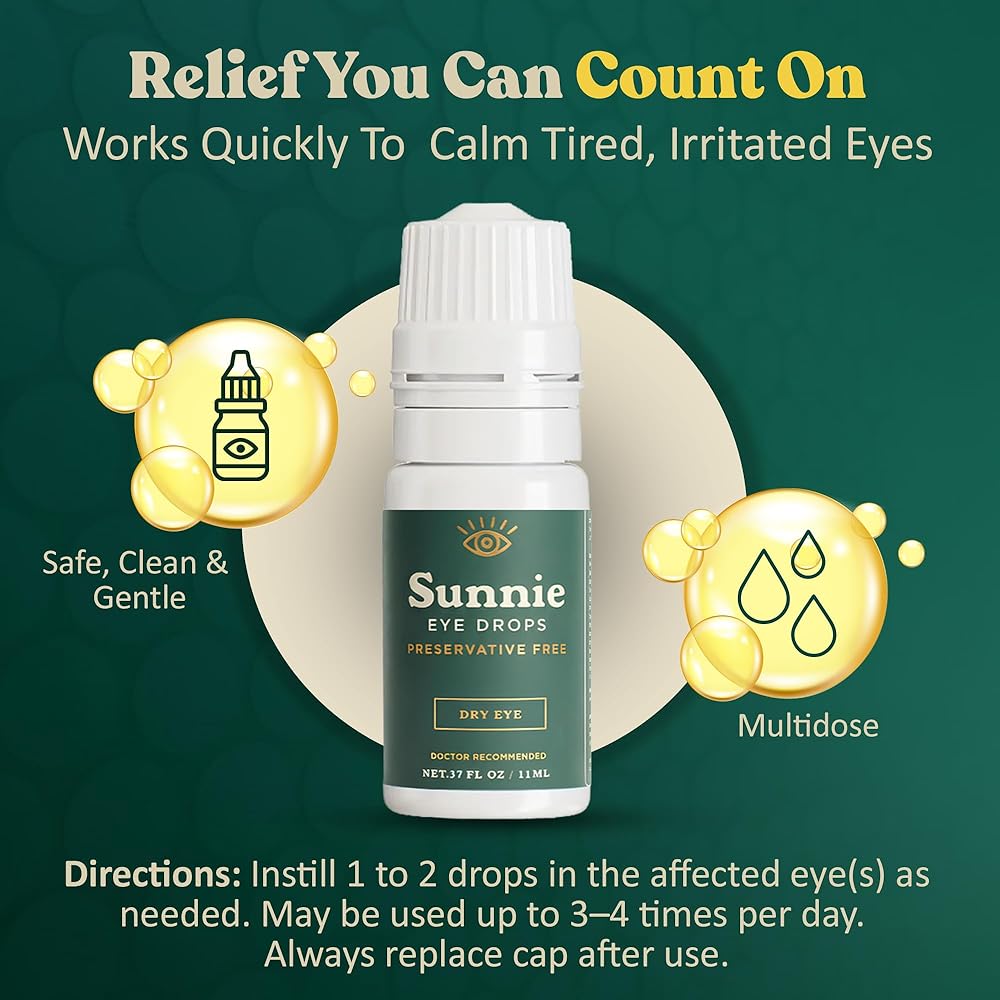 PRESERVATIVE-FREE RELIEF FOR DRY, IRRITATED EYES: Sunnie Dry Eye Drops deliver gentle, effective lubrication without harsh preservatives — perfect for sensitive eyes seeking long-lasting moisture