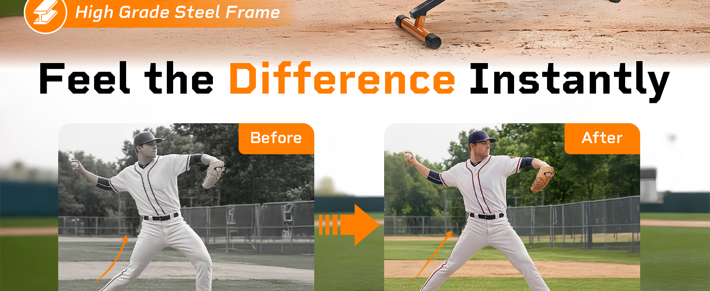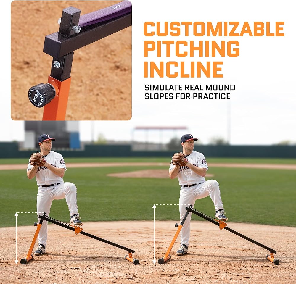 ADJUSTABLE MOUND-STYLE INCLINE - Customizable pitching incline simulates real mound slopes so pitchers can practice proper downhill mechanics anywhere — field, backyard, cage, or gym.