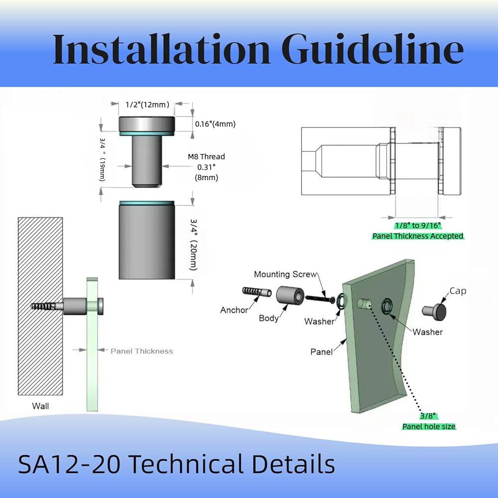 - MOUNTING OPTIONS: glass stadoff can be installed on various wall surfaces including drywall, concrete, or wood for flexible display solutions