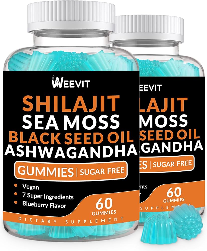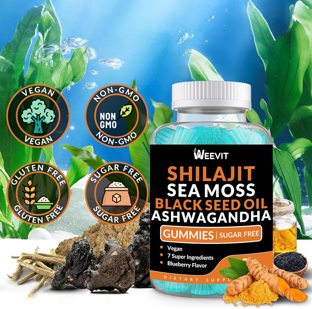 Shilajit Sea Moss Ashwagandha Gummies with Turmeric, Black Seed Oil, Vitamin C D for Men & Women, Shilajit and Ashwagandha Gummy, All in 1 Supplements for Immune, Absorption & Energy Support