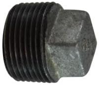 - MIDLAND INDUSTRIES Cored Square Head Plug, Connection Size: 3 in, Connection Type: MPT, Malleable Iron, Galvanized, #3-8 Thread, 150 psi, Dimension Standards: ANSI B16.3, 1.96 in L x 1.69 in W, -20 to 350 deg F, Additional Information: 1.690 lb Weight