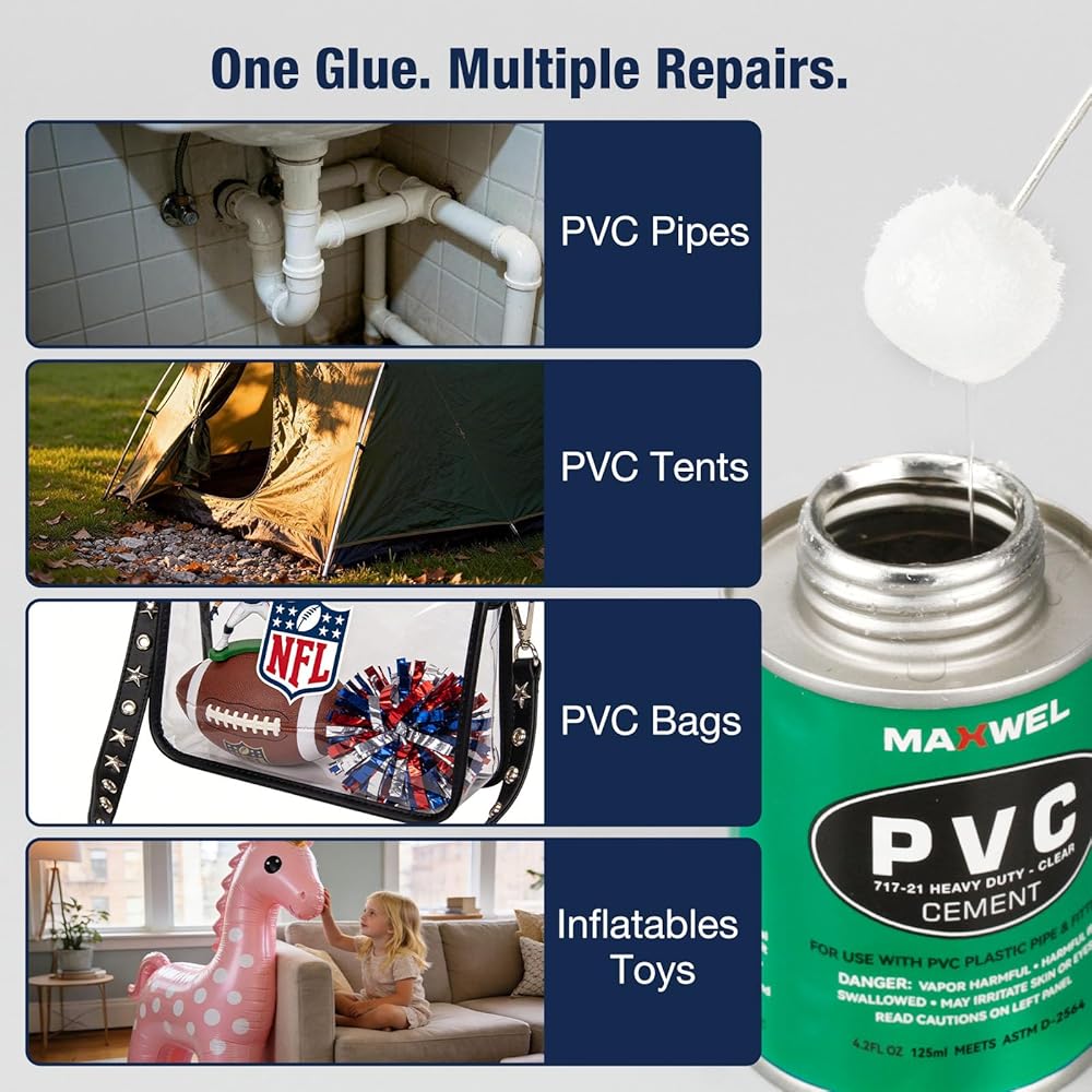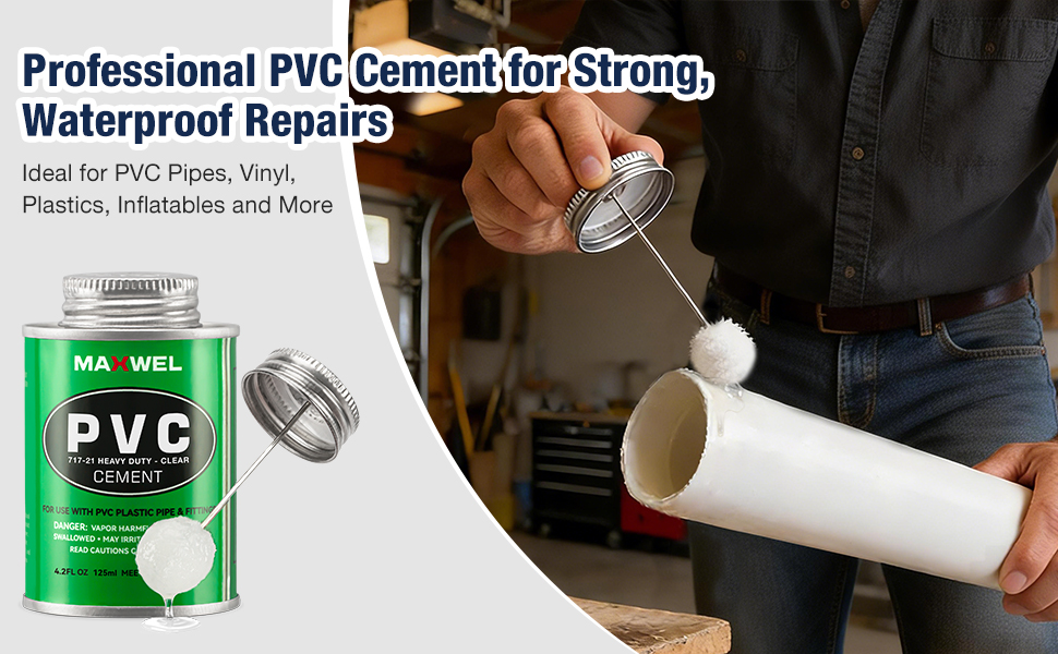 Versatile Use PVC Cement: Works on rigid PVC, vinyl, inflatable PVC, electrical conduit and vinyl upholstery for home, RV, boat, and garden projects;