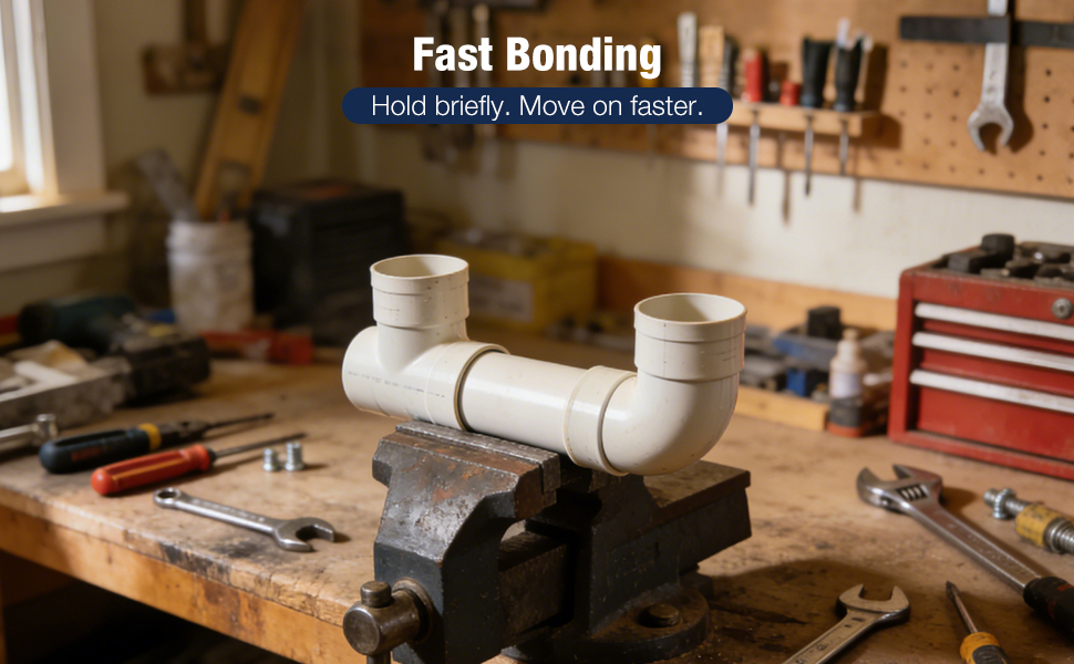 Fast Dry Bond PVC Cement: Solvent welds PVC pipe and fittings in minutes; accelerates project completion for plumbing, repairs, and DIY jobs;