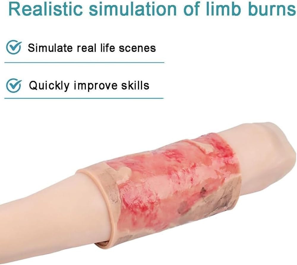 ➤ Realistic Burn Simulation: Our trainer accurately replicates the look and texture of 2nd & 3rd-degree limb burns using high-quality artificial skin, providing an authentic training experience for wound assessment and care.