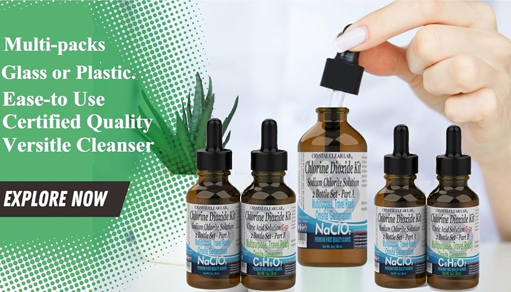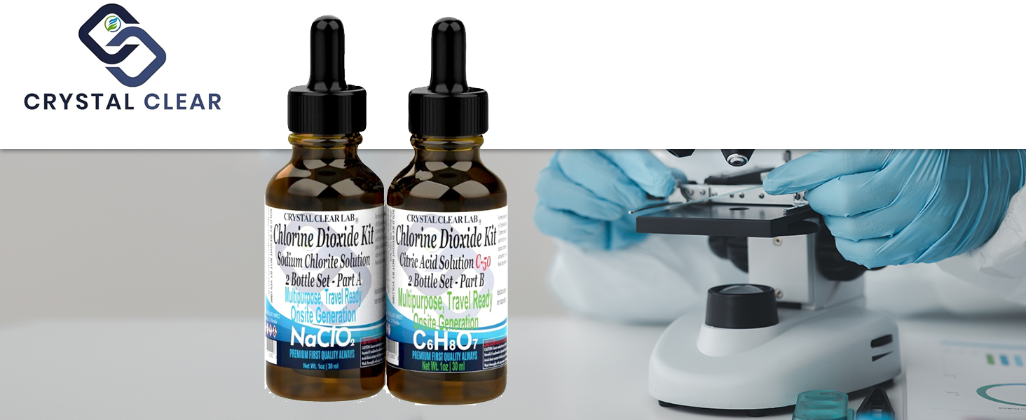 Crystal Clear Chlorine Dioxide ClO2-Kit, Citric Acid Solution w/EZ-Drop Bottles, Small 1 Oz (2 Bottles)