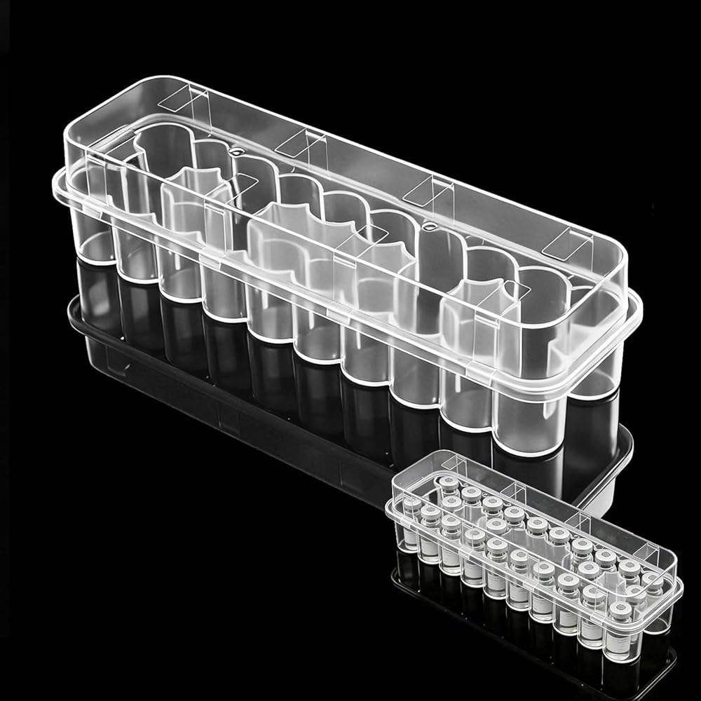 【12 Vials, Size-Specific】Organize 3mL vials with 2 cases; fits bottles up to 16mmØ x 38mmH. Measure diameter/height before ordering—3mL vials can vary by brand.