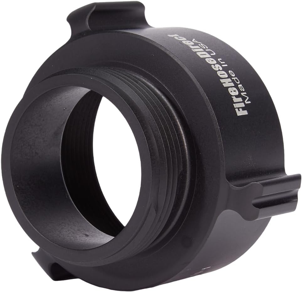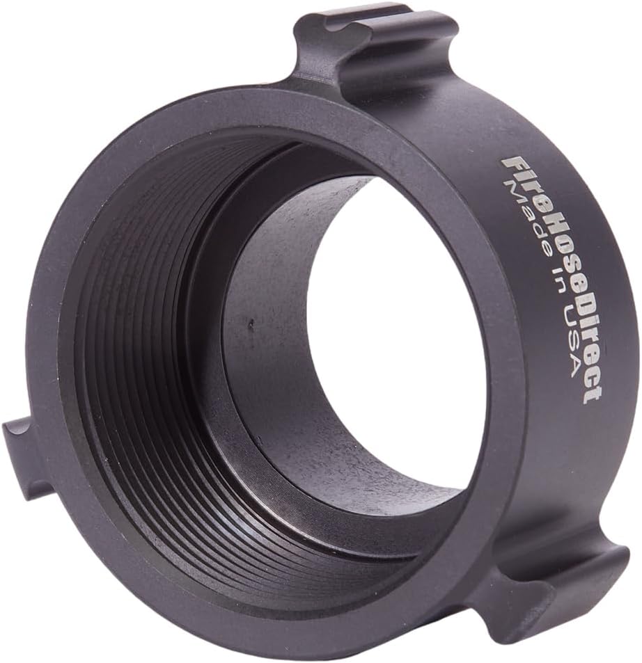 Aluminum adapters are fabricated from seamless extruded 6061-T6 aluminum and hard coat anodized per MIL-A-8625 Type III, Class 1. Threads have a blunt start Higbee cut with indicators on adjacent lugs. Part identifications are permanent and stamped prior to hardcoat. Adapters and components meet the requirements of NFPA 1963.