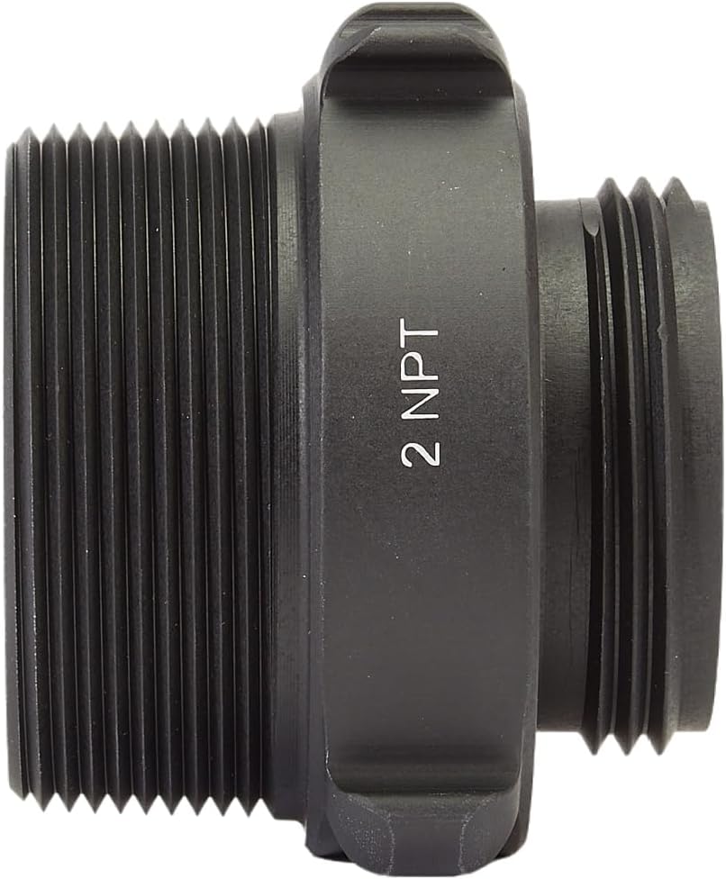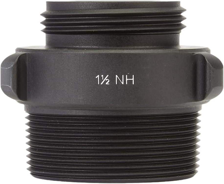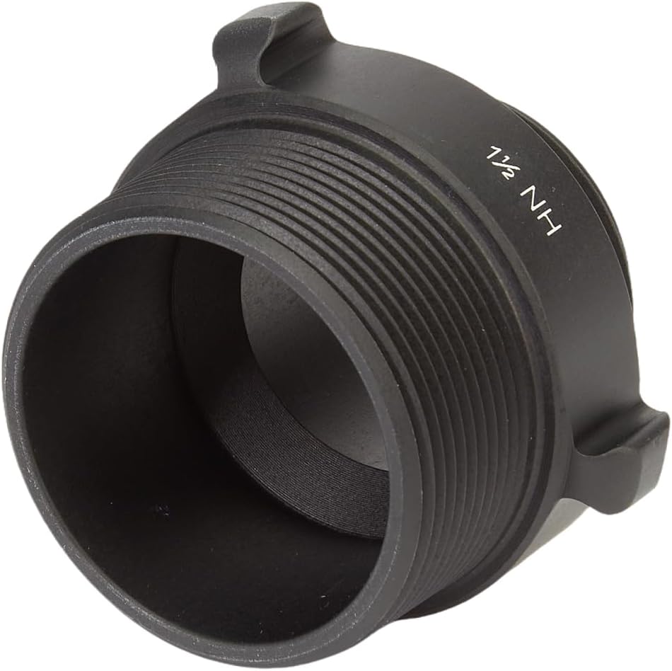 Aluminum adapters are fabricated from seamless extruded 6061-T6 aluminum and hard coat anodized per MIL-A-8625 Type III, Class 1. Threads have a blunt start Higbee cut with indicators on adjacent lugs. Part identifications are permanent and stamped prior to hardcoat. Adapters and components meet the requirements of NFPA 1963.