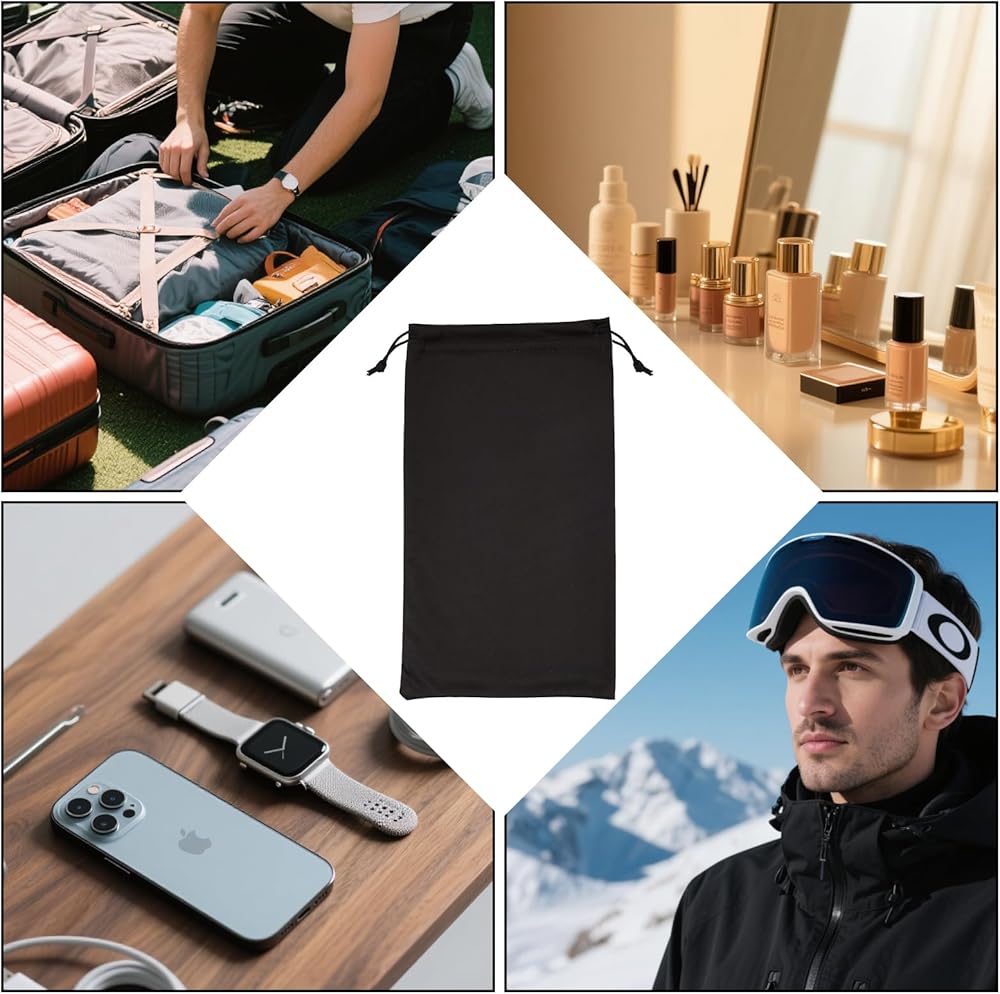 This product includes 2 ski goggle pouches (pouches only, ski goggles not included) to meet your daily use and replacement needs. Made of high-quality microfiber, the pouches are soft, smooth, lightweight and washable—they can even double as cleaning cloths to keep your lenses clear for a sharp view. Equipped with a user-friendly drawstring design, you just pull the string to close the pouch easily, and this thoughtful detail also adds an extra layer of protection. With scratch-resistant performance, the pouches are perfect for storing ski goggles, ski masks, extra lenses, camera lenses, eyeglass accessories, watches, phones, jewelry like rings, bracelets, necklaces and earrings, as well as other small trinkets, helping you organize and store delicate items neatly. Measuring 25cm (9.84 inches) in length and 14cm (5.51 inches) in width, they fit nearly all types of ski goggles.