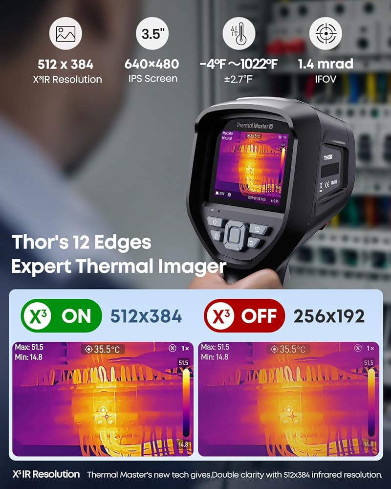 【Precision PCB & Electrical Detection】Thor001 Thermal Camera provides 512×384 X³ IR resolution and a dedicated macro lens, detecting PCB faults as small as 1 mA. Ideal for engineers and technicians performing PCB detection, electrical inspection, and industrial maintenance. 4× digital zoom ensures detailed analysis from close-ups to wide-area inspections.