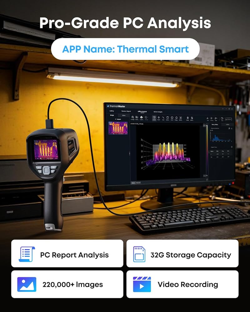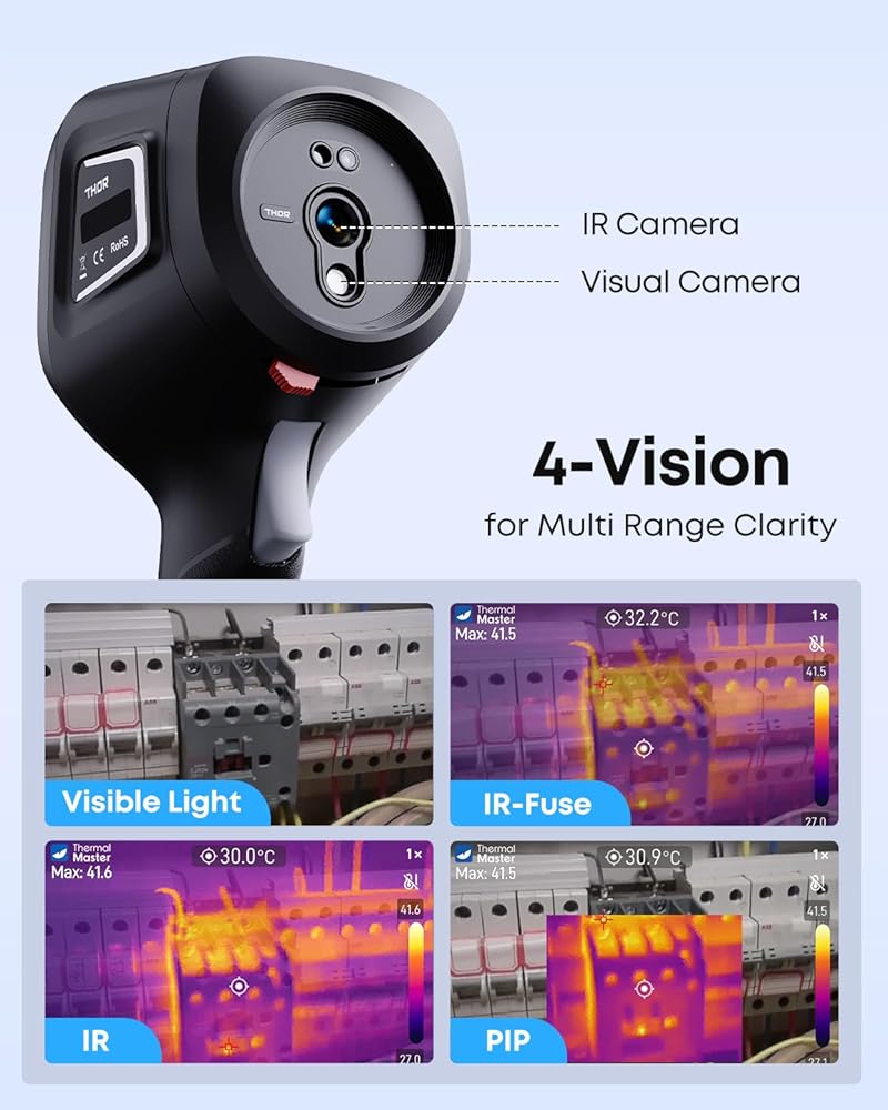 【Dual-Light Fusion & Professional Documentation】Thor001 Handheld Thermal Camera combines a 2 MP visible-light camera with picture-in-picture functionality. Record precise thermal data and add voice notes via a noise-reducing microphone for professional inspection reporting, ideal for engineers, technicians, and maintenance teams.