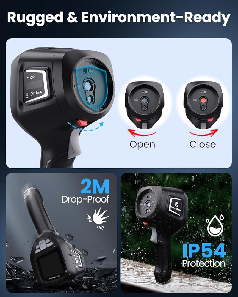 【Versatile Field Inspection】Thor001 infrared camera supports longer inspection distance, making HVAC inspection, industrial site assessment, and electrical cabinet checks safer and more efficient. Smooth 4× digital zoom allows seamless switching between close-ups and large-scale targets.