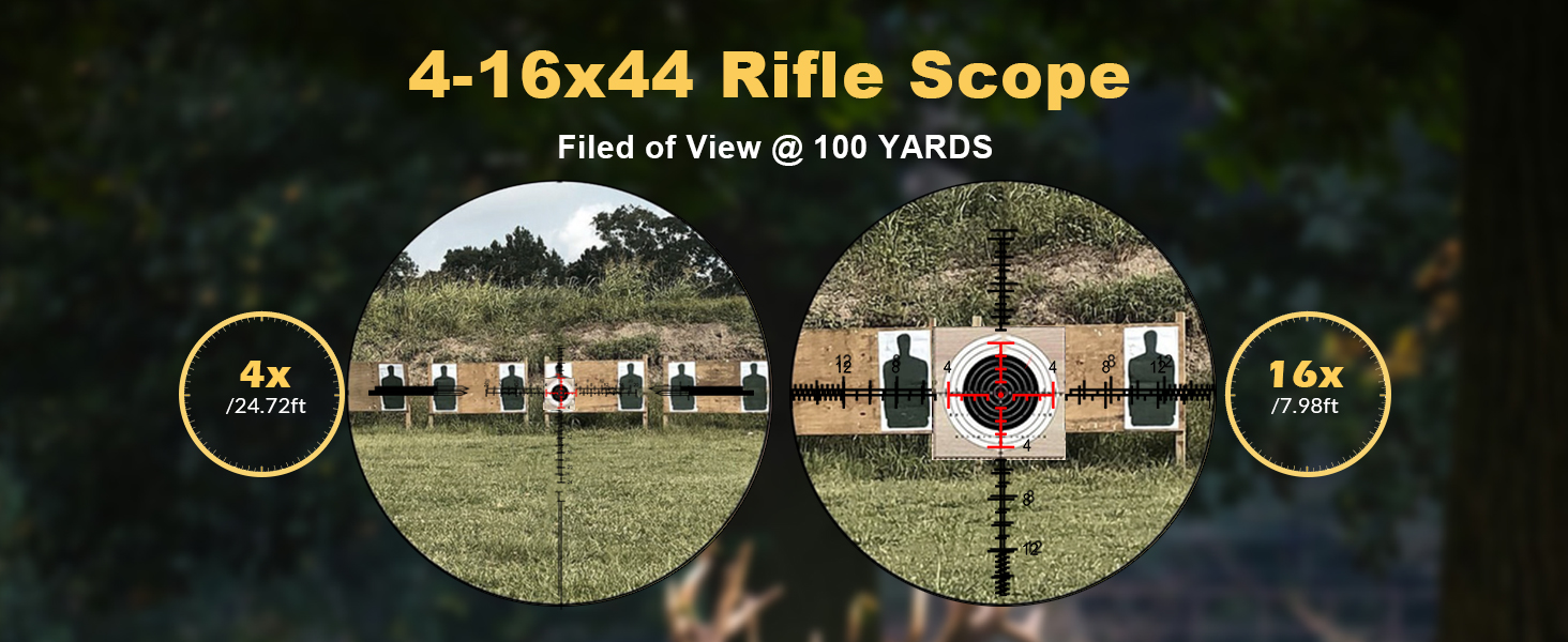 VERSATILE 4-16X44 FOR HUNTING & .308 / 6.5 CREEDMOOR: The 4-16x magnification range delivers fast target acquisition at 4x and detailed long-range precision at 16x. The 44mm objective lens provides excellent light transmission and a wide field of view (24.72 ft @100 yds at 4x), making it a reliable rifle scope for AR-15, .308, and 6.5 Creedmoor platforms.