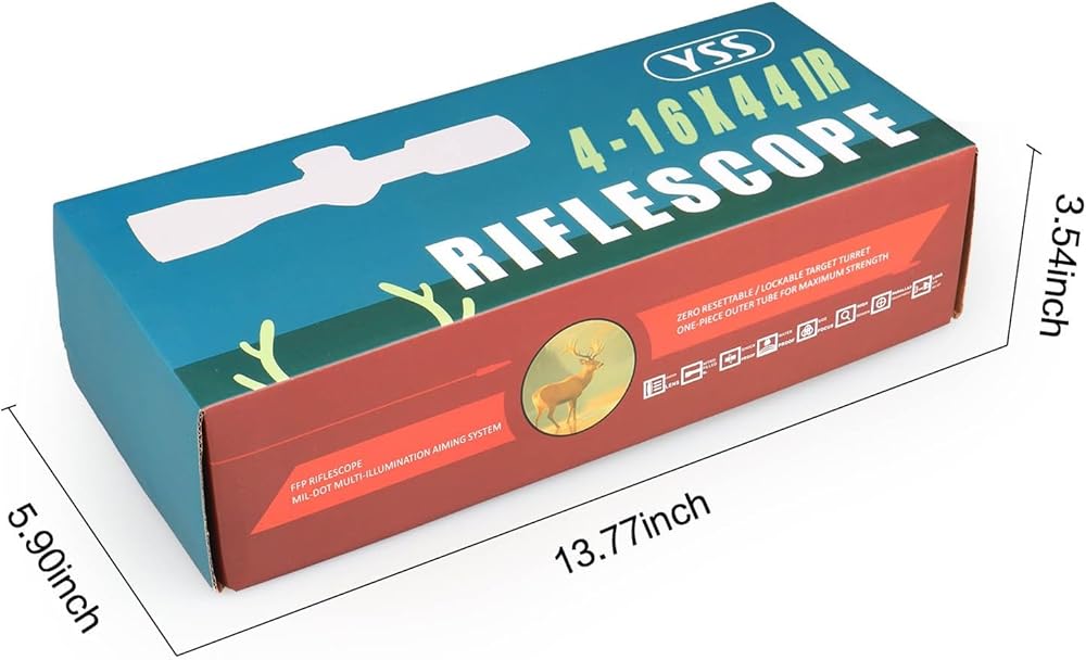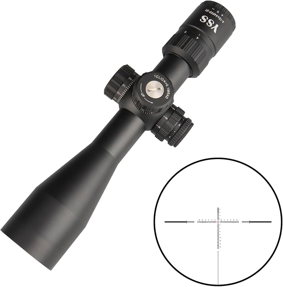TRUE FFP PRECISION FOR LONG RANGE SHOOTING: First Focal Plane (FFP) design ensures the MIL-DOT reticle scales accurately from 4x to 16x, allowing precise holdovers at any magnification. Ideal for 500 yard shooting, deer hunting, and tactical range use. The illuminated red center with 6 brightness levels supports clear aiming in low-light conditions like dawn and dusk.