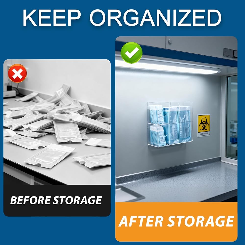 SPACE-SAVING & PROFESSIONAL DESIGN With its clean, modern appearance, this acrylic holder replaces bulky packaging boxes and keeps your workspace looking orderly. Its compact footprint maximizes storage efficiency, making it an excellent choice for facilities with limited space.