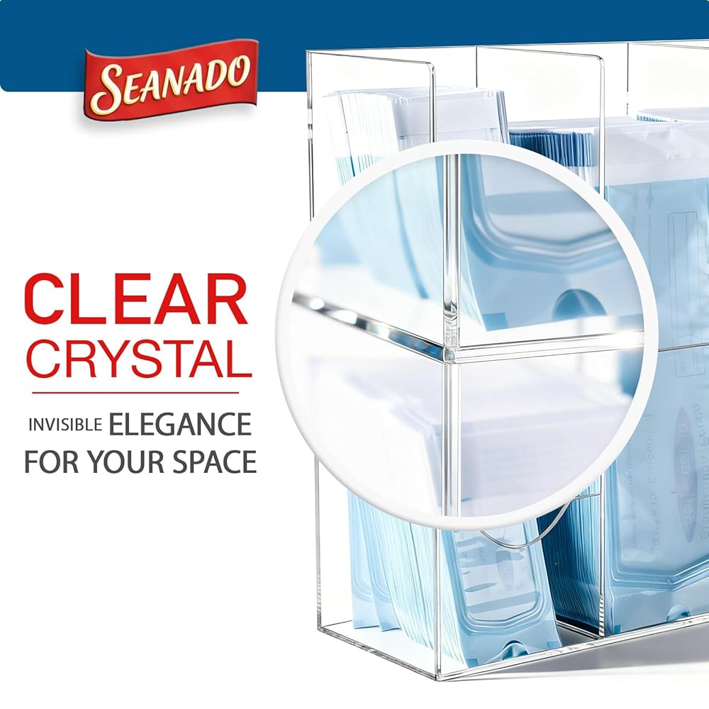 DURABLE CLEAR ACRYLIC CONSTRUCTION Crafted from premium, thick acrylic that resists cracking and maintains long-lasting clarity. The transparent design makes it easy to see your inventory levels at a glance, helping you keep essential packaging supplies well arranged and ready for use.