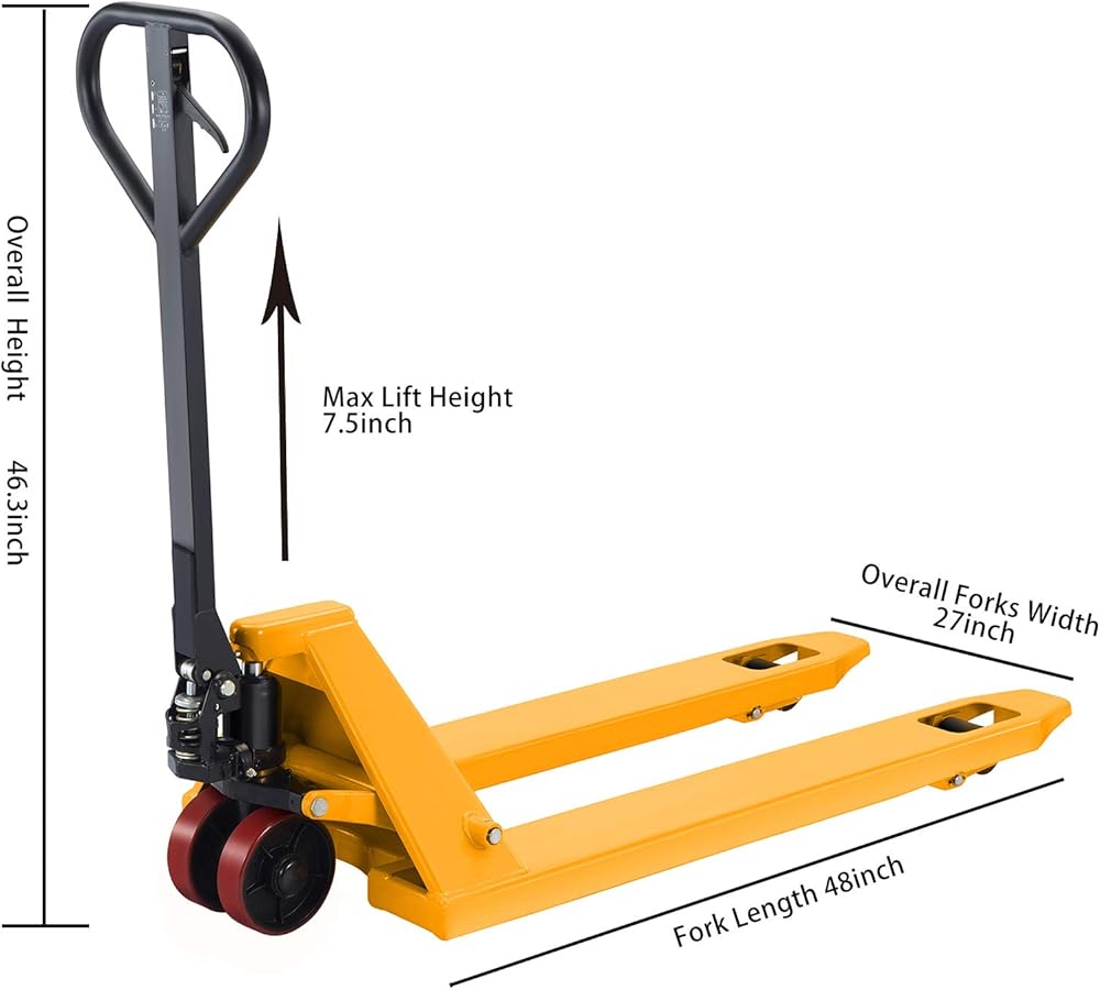 Tory Carrier Strong Manual Pallet Jack Hand Pallet Truck 48" Lx27“W 6600lbs Capacity