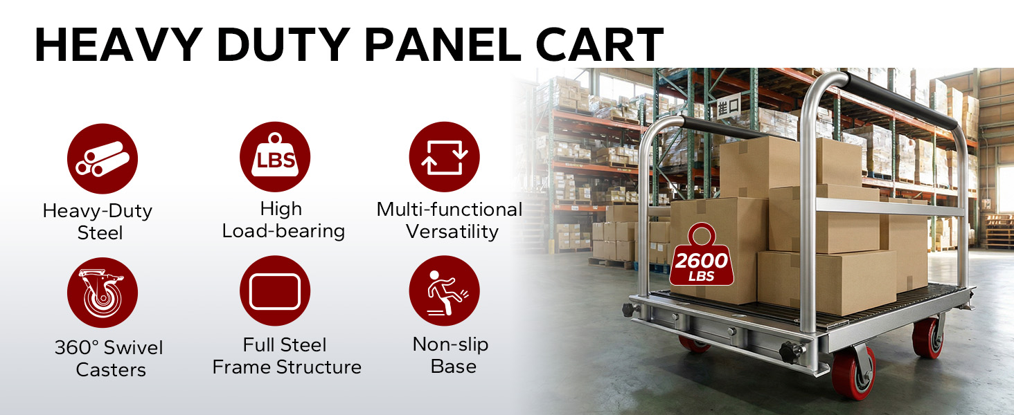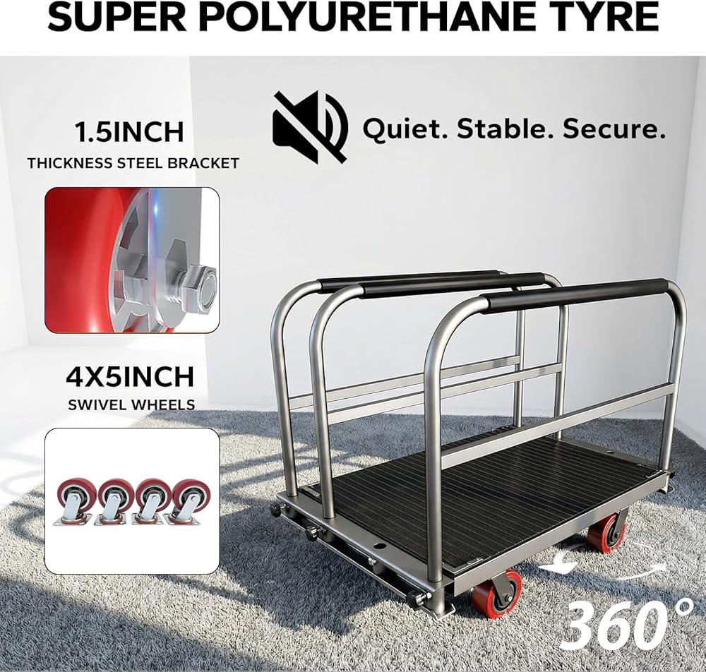 💪🏼Reliable and Durable: Coated with a black powder finish, our platform truck cart with wheels is resistant to rust and corrosion, ensuring long-lasting performance. Its sturdy construction of this panel cart guarantees stability and strength, making it a reliable choice for your heavy-duty transportation needs