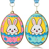 2 Pcs Easter Gold Medals, 2.95 Inch Easter Bunny Egg Shape Award with Colorful Neck Ribbons, Easter & Spring Spirit Medallion Decorating Contest Award Medals for Egg Hunt Party Gift