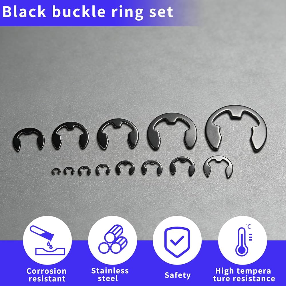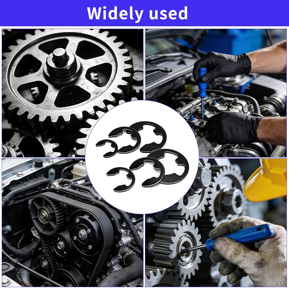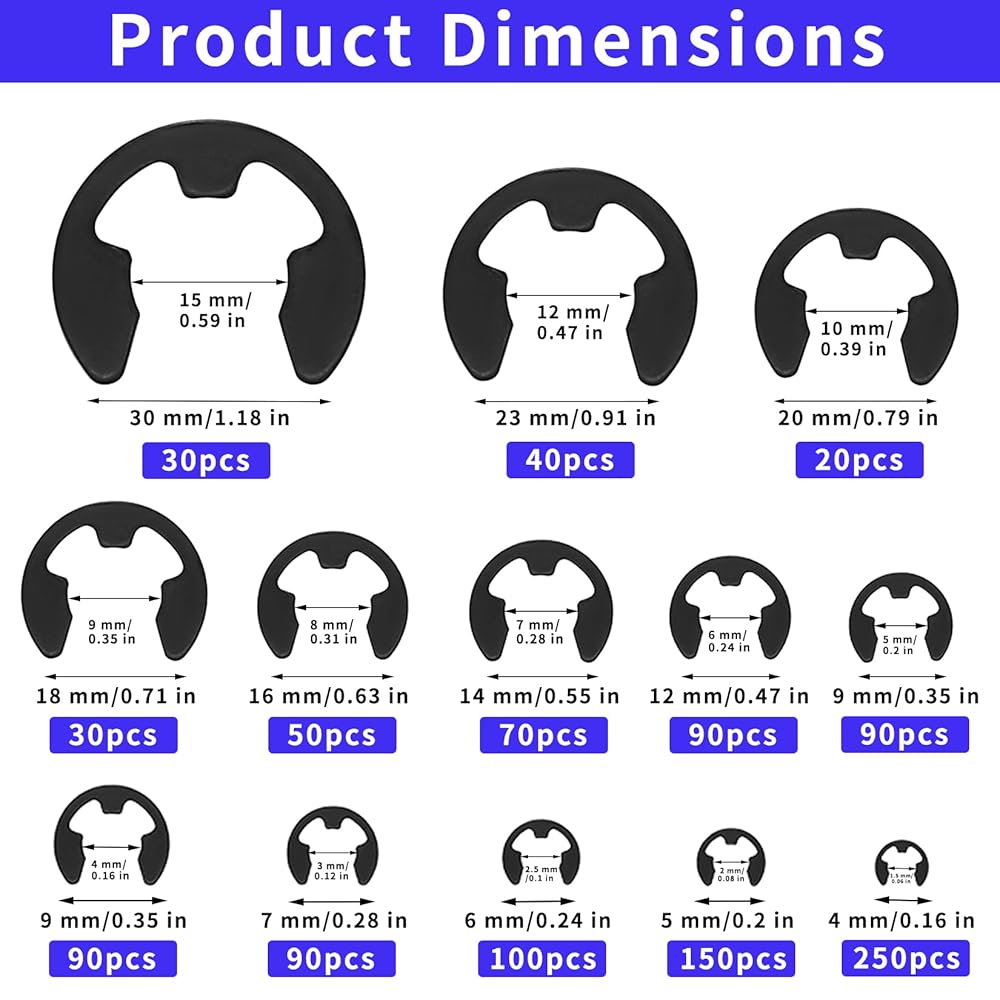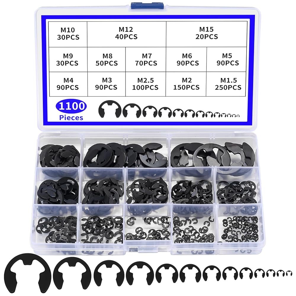 1100 Pcs E-Clip Retaining Rings, C Clips E Clips Assortment Kit, Snap Rings, Black Metal Snap Ring Kit for Auto Parts Repair, Machinery Maintenance, Industrial Equipment (13 Sizes)