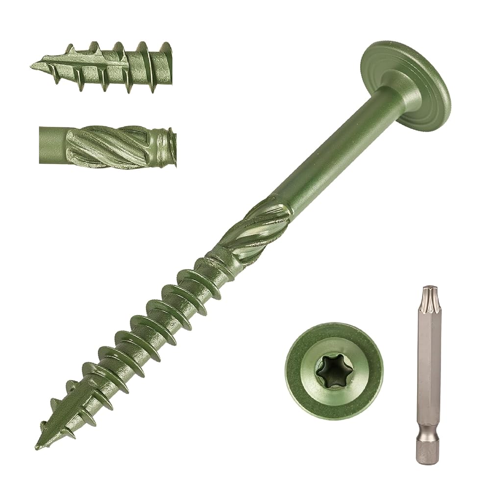 Upgrade your construction projects with these professional-grade #14 structural wood screws. Available in lengths from 3" to 8", these heavy-duty fasteners feature innovative design elements for superior performance. The self-tapping tip eliminates pre-drilling, while the knurled shoulder prevents wood splitting for clean, secure installations. The modified truss washer head provides a flush, neat finish that looks great in exposed applications. Compatible with T30 star drive bit (included), these screws offer excellent grip and reduced cam-out during installation. The zinc plated finish provides lasting protection against rust and corrosion, making them ideal for both interior and exterior applications. Perfect for deck building, framing, and other demanding structural wood connections. The washer-style head distributes load evenly while maintaining a clean appearance. These screws combine the strength of lag bolts with the easy installation of wood screws, making them an excellent choice for serious construction and renovation projects.