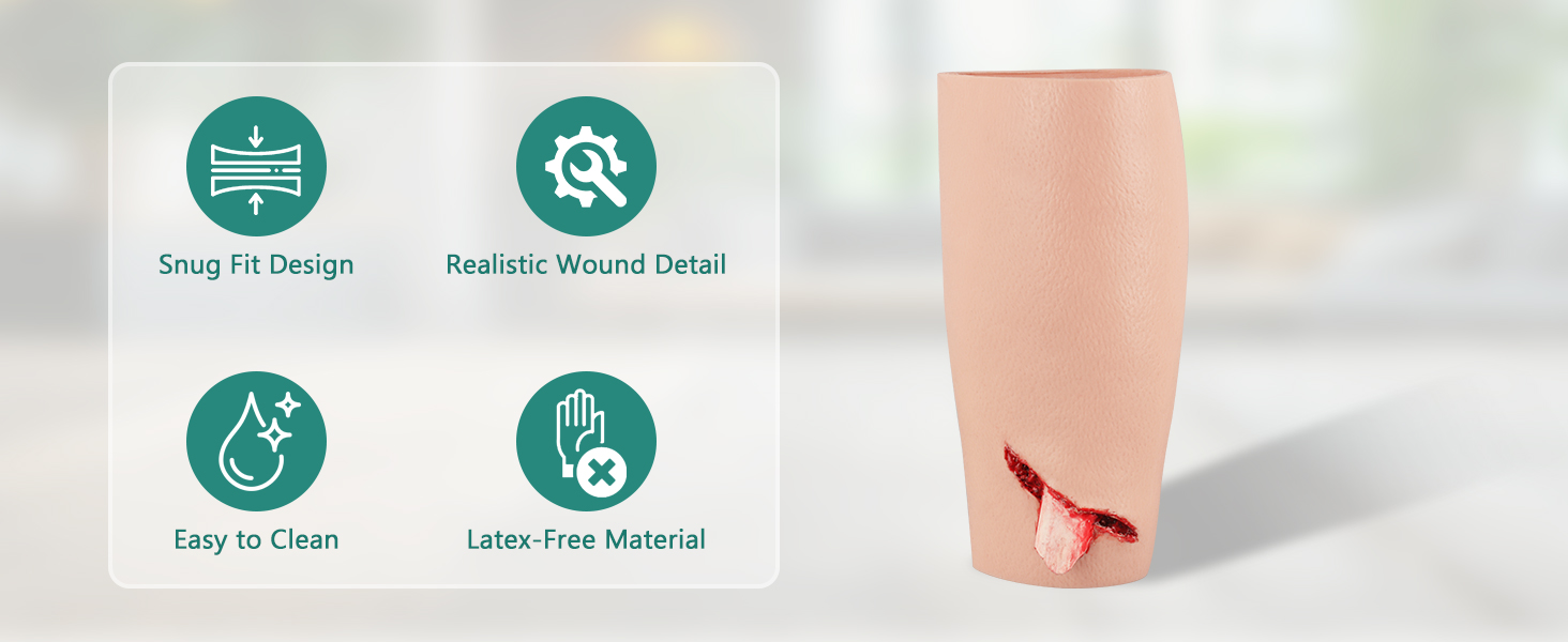 Reusable & Self-Contained Training Tool: No additional accessories required. The wound care training sleeve can be used independently for demonstrations and hands-on practice, making it a convenient and cost-effective solution for trauma simulation programs.