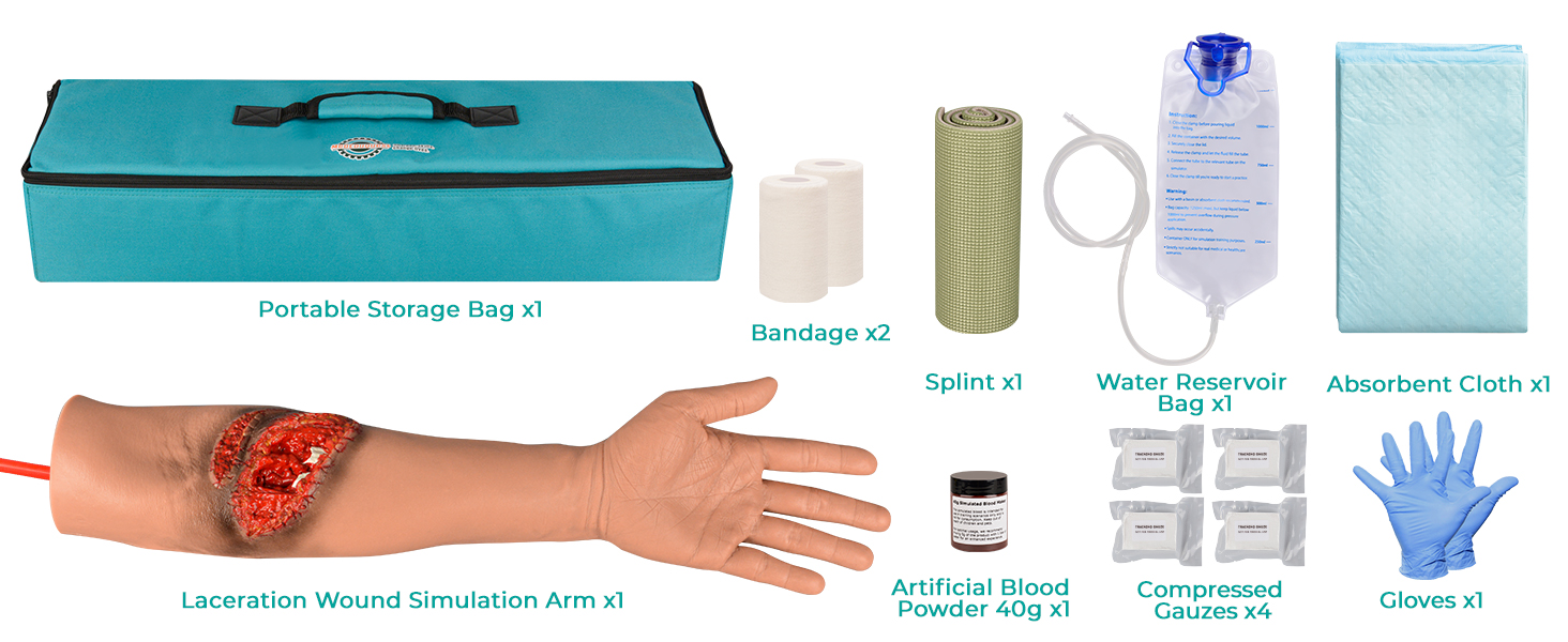 Comprehensive Emergency Scenario TrainingDesigned to go beyond basic wound practice, this kit integrates simulated fracture features to cover a full range of emergency training scenarios. Trainees will develop proficiency in simulated wound assessment, hemostasis practice, packing techniques, and splint application—all focused on building confidence for real-world emergency response training.