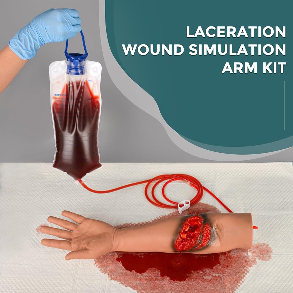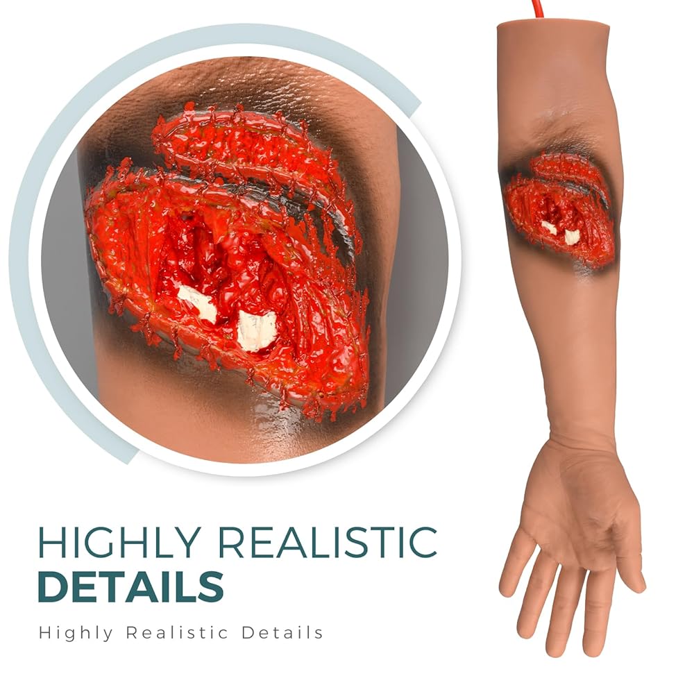 Laceration Wound Simulation Arm Kit Wound Packing Fracture Training Model for Education Silicone Trainer for Nursing Students, Wound Care, Hemostasis, and Immobilization Practice