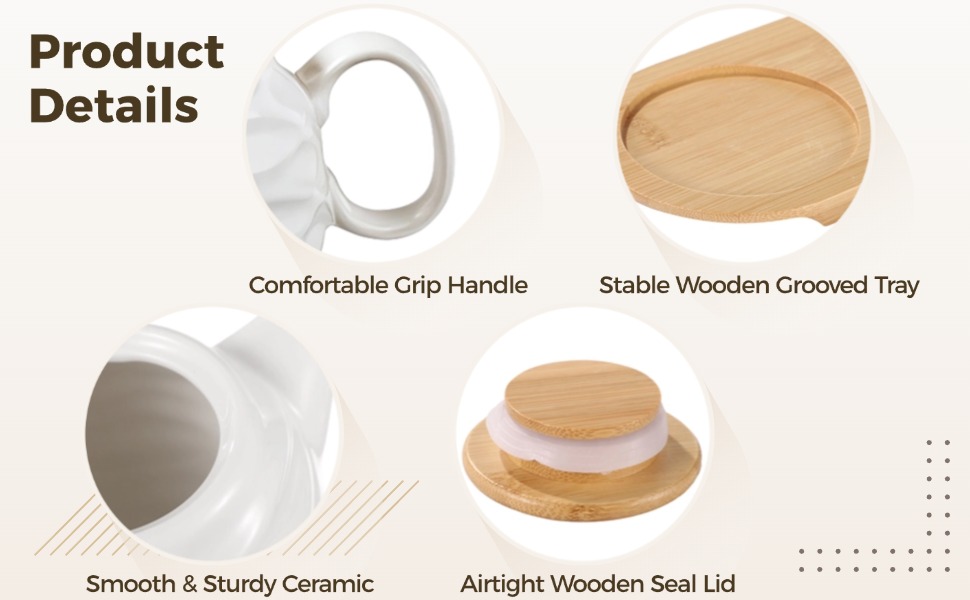 Elegant Design: Features a sleek ceramic surface and unique wave pattern; adds a touch of elegance and sophistication to your coffee bar; white and natural wood tones complement any décor effortlessly