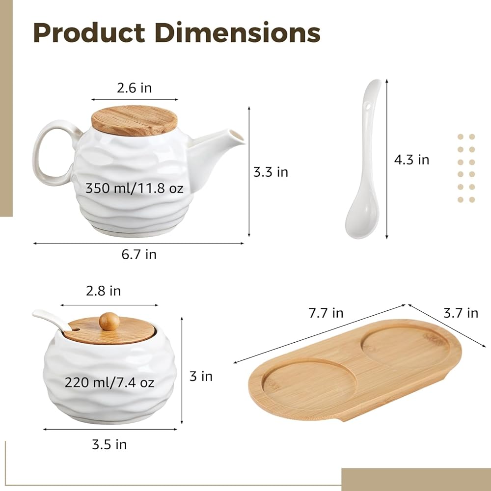 Generous Capacity: The pitcher holds 350ml/11.8 oz, ideal for serving cream, tea, coffee, or milk; the jar holds 220 ml/7.4oz for ample sugar and other spice storage; ensures you have all you need for your favorite beverages