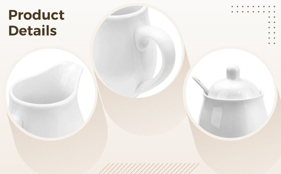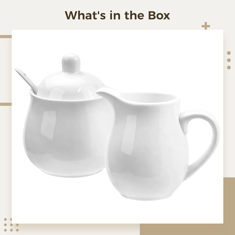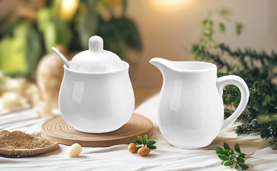 Reliable Ceramic Quality: Crafted from quality white porcelain with a smooth glazed finish, this elegant serving set features a 3.9 x 3.9 x 5.9 inch sugar bowl and 5.9 x 3.5 x 4.7 inch cream pitcher for perfect coffee service presentation